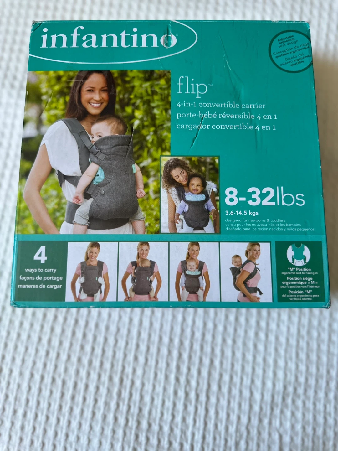 Looking to sell a new Infantino Flip 4-in-1 convertible carrier! It's suitable for babies and toddlers weighing between 8-32lbs (3.6-14.5 kgs). This carrier offers 4 ways to carry your little one, making it super versatile.!