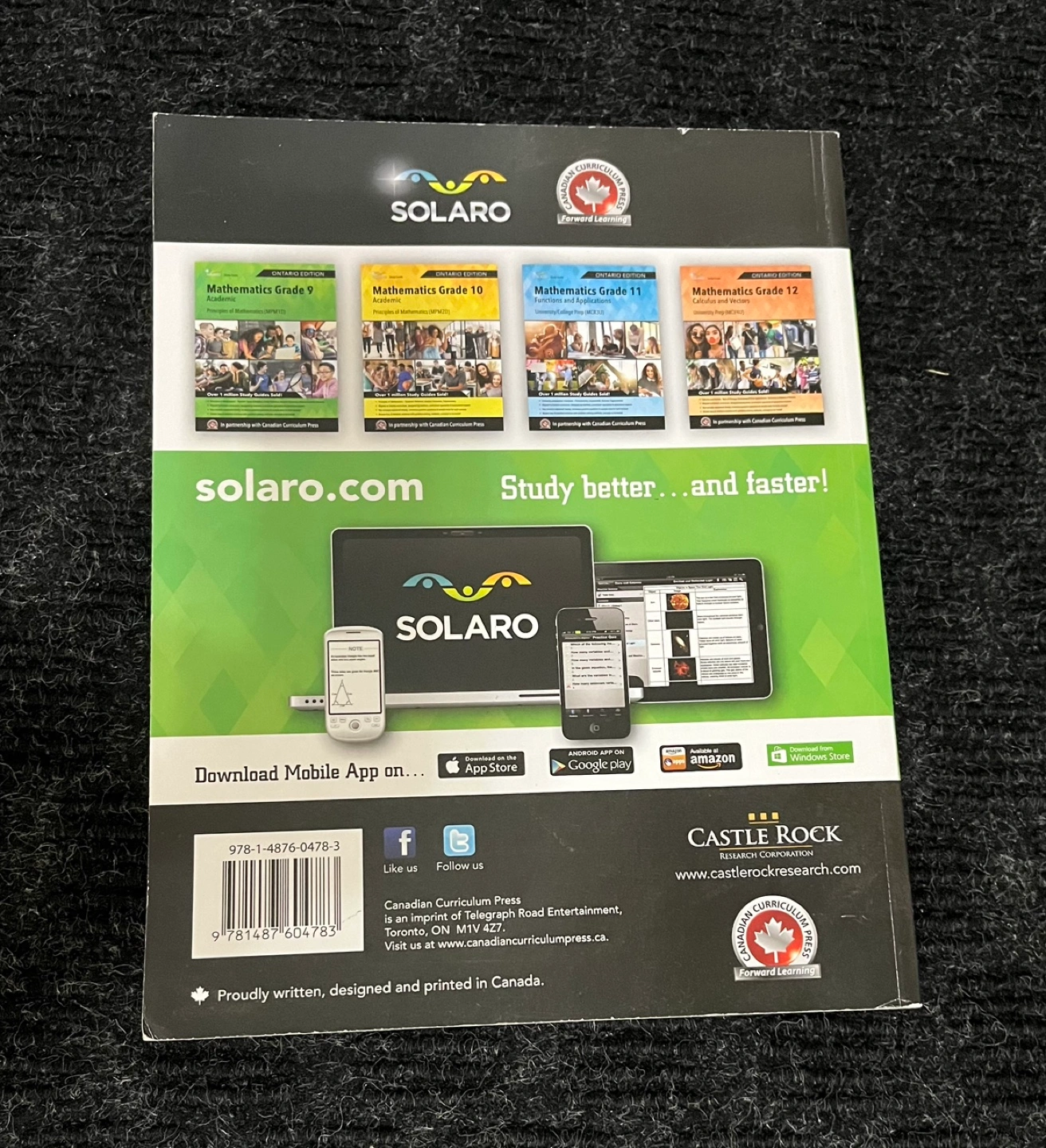 Principles of Mathematics (MPM1D) textbook study guide. Aligned to Ontario curriculum. Includes key concepts clearly explained, numerous practice questions & sample tests for each concept. Answer keys & detailed solutions with problem-solving methods, concepts to be tested.