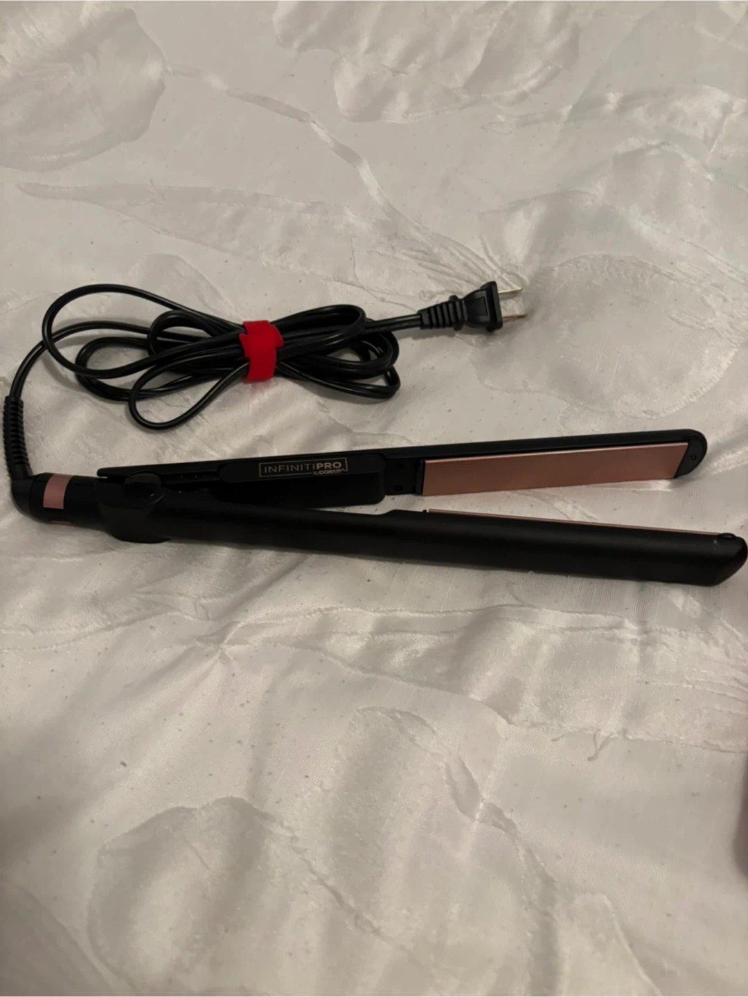 Selling an InfinitiPRO by Conair flat iron. It's in great shape and ready to help you achieve sleek, straight hair or create beautiful curls. This flat iron heats up quickly and provides even heat distribution for consistent results. A great tool for any hair type!
