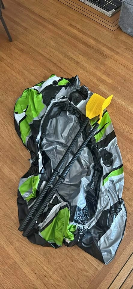 60Selling an inflatable boat with two paddles. Perfect for lakes, calm rivers, or summer fun at the beach. 🚤 Details: • Fits 2 people comfortably • Includes 2 paddles/oars • Easy to inflate and deflate • Compact and lightweight – easy to store and carry • Used only a couple of times, in great condition 💲45 – pickup only.