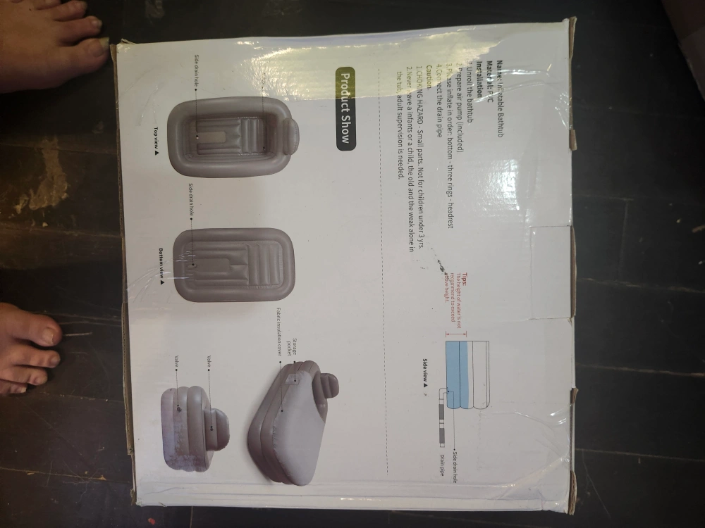 Selling an inflatable bathtub. It's portable and foldable, making it great for travel or small spaces. Includes an air pump for easy inflation.