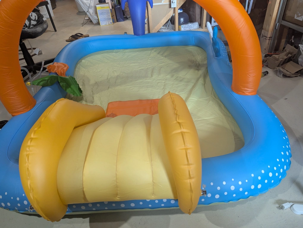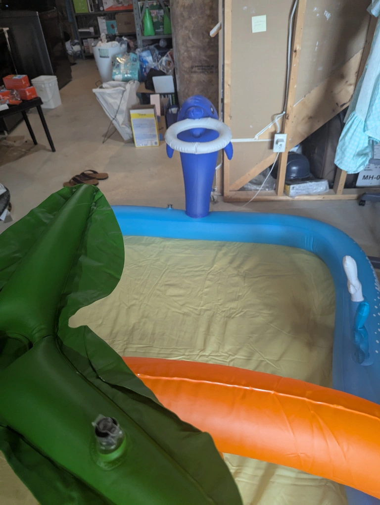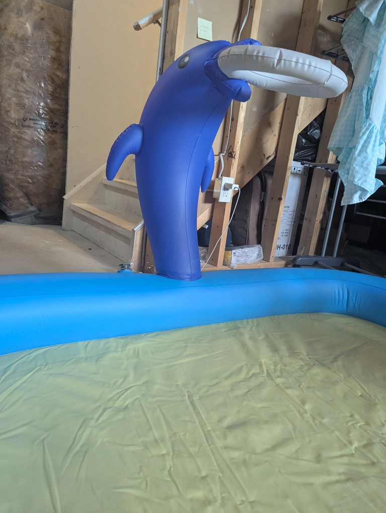 Get ready for some wet and wild summer fun with this inflatable dolphin water park! It's perfect for kids to splash around and cool off on hot days. The pool features a fun dolphin design and a slide for extra excitement. Originally priced at $328.27, this is a great deal for a summer of fun!