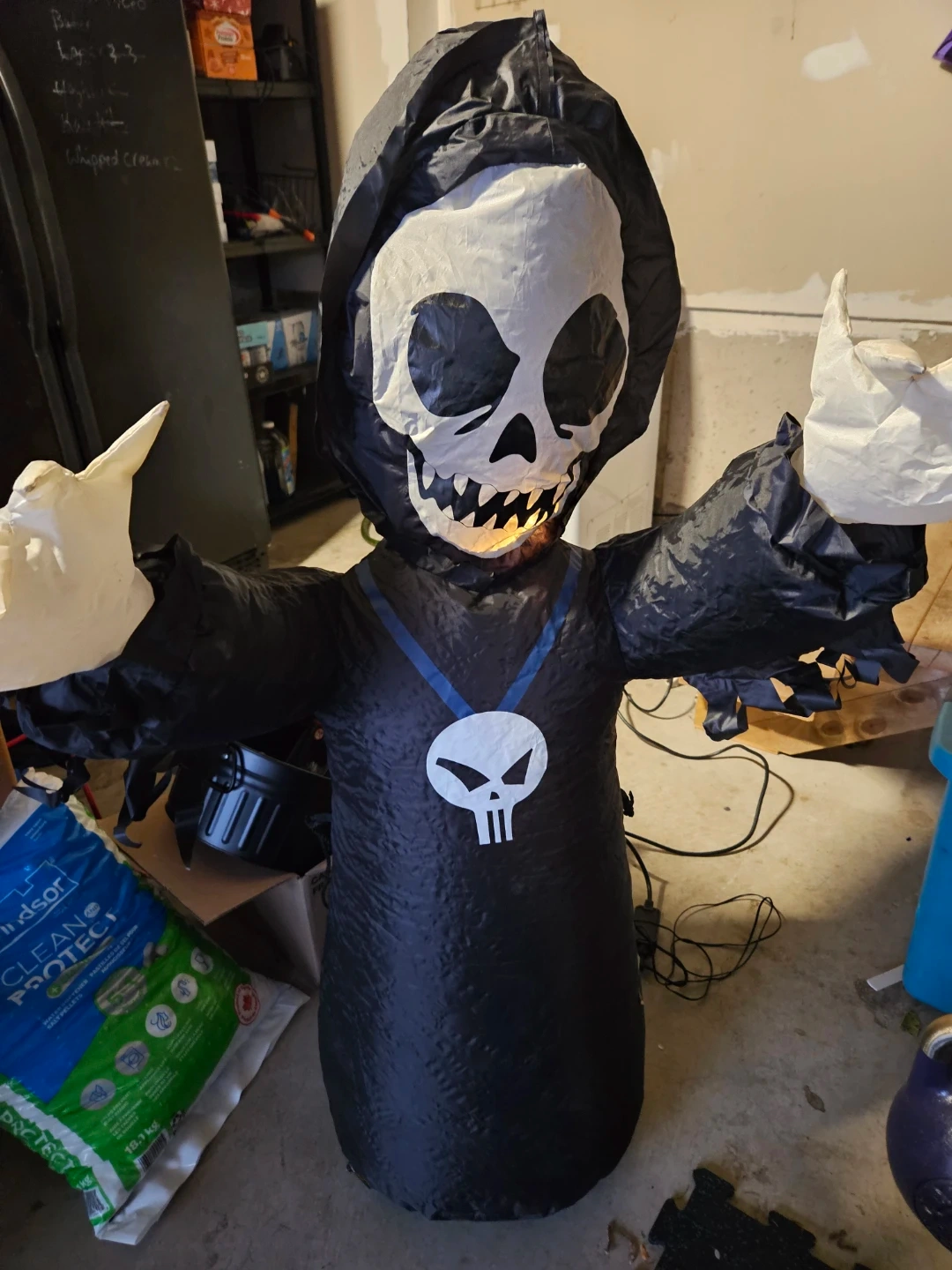 28Get ready for Halloween with this inflatable grim reaper decoration! It's perfect for adding a spooky touch to your yard or home. The inflatable features a classic grim reaper design with a skull face and black robe. It's easy to set up and will definitely be a hit with trick-or-treaters!