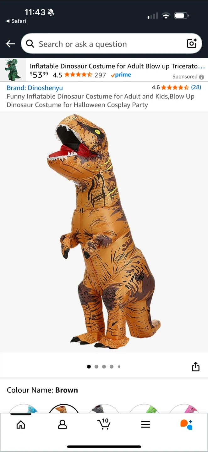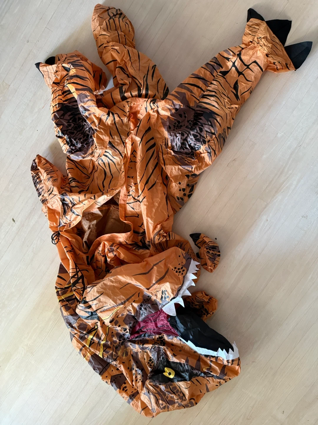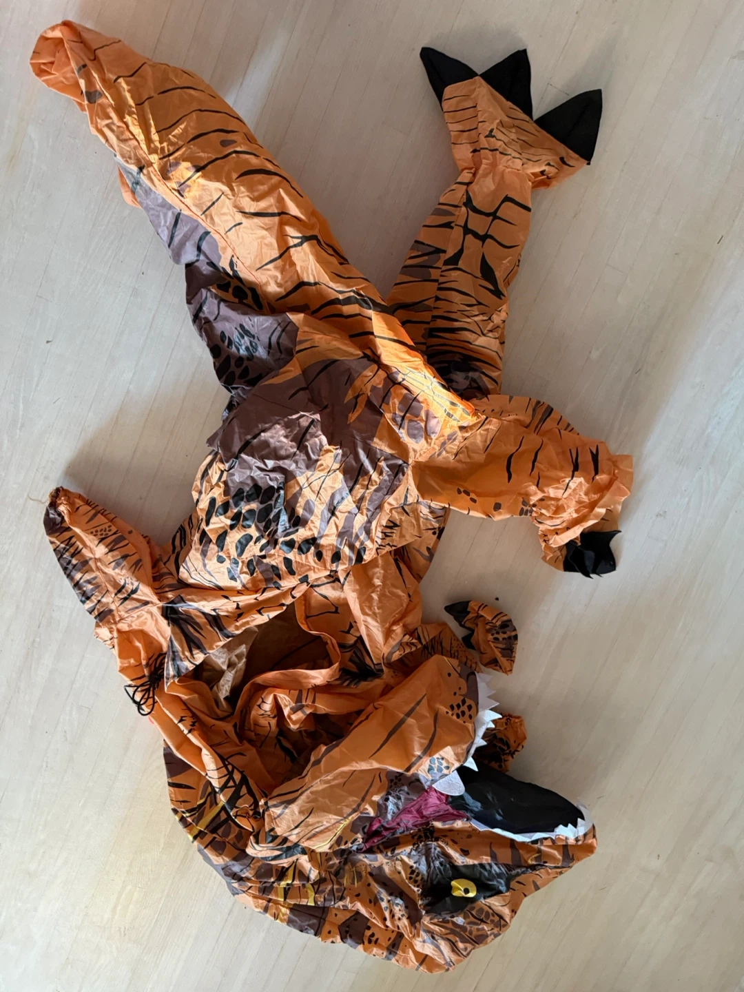 Turn heads and get laughs everywhere you go with this hilarious inflatable T-Rex costume! Perfect for Halloween, parties, cosplay, school events, or just having fun. ✅ One size fits most adults & teens ✅ Inflates quickly with built-in fan (battery operated) ✅ Lightweight, comfortable, and easy to move in ✅ Eye-catching design with detailed print ✅ Great for Halloween, birthdays, parades, or fun videos 📦 Condition: New / Gently used (depending on your item) 📍 Pickup in Transcona 💲 Price: 45