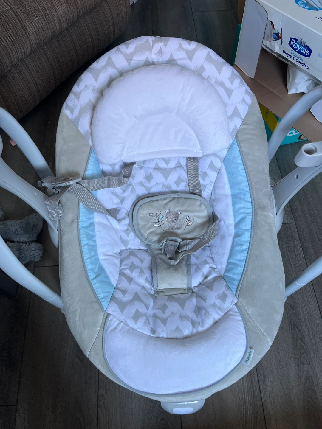 Selling an Ingenuity baby swing in excellent condition. It features a cute design with a neutral colour palette. Perfect for soothing your little one!