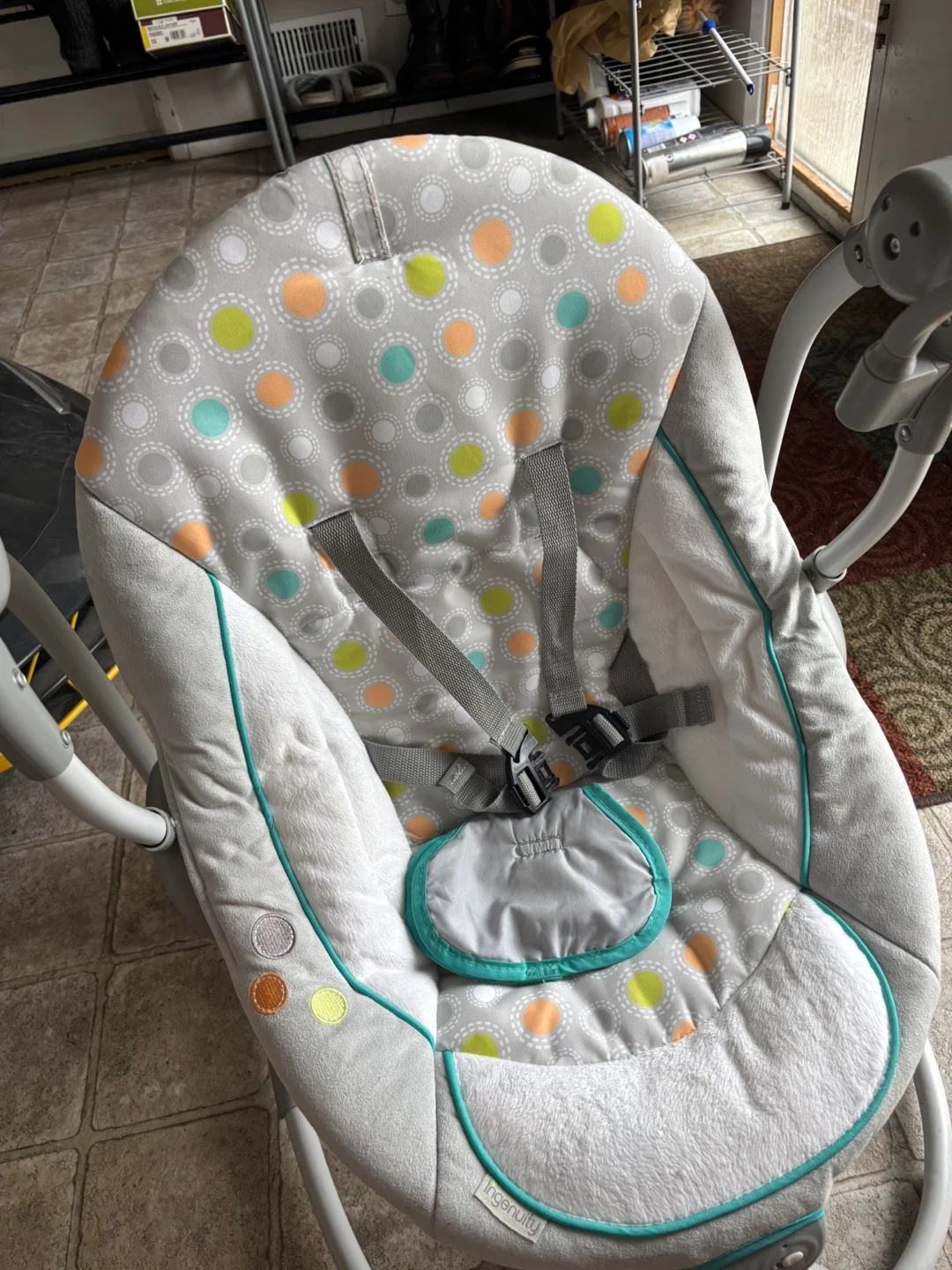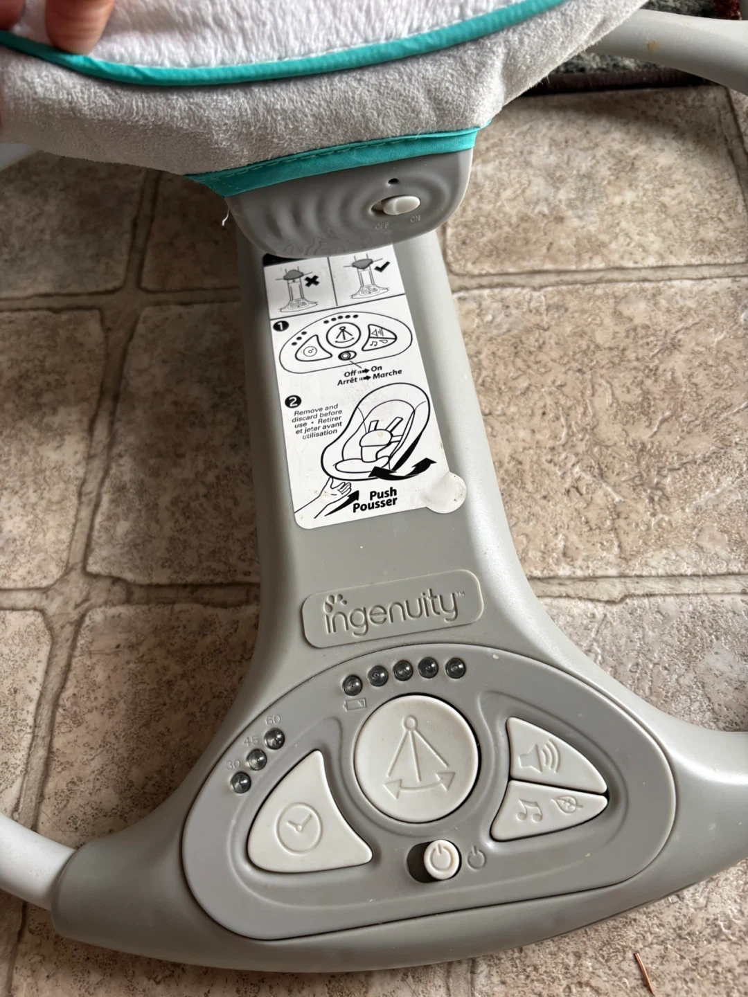 10Selling a baby swing from Ingenuity. It's in great shape and ready for a new little one! Features a comfy seat and soothing motions to keep your baby content and happy. Perfect for those early months!