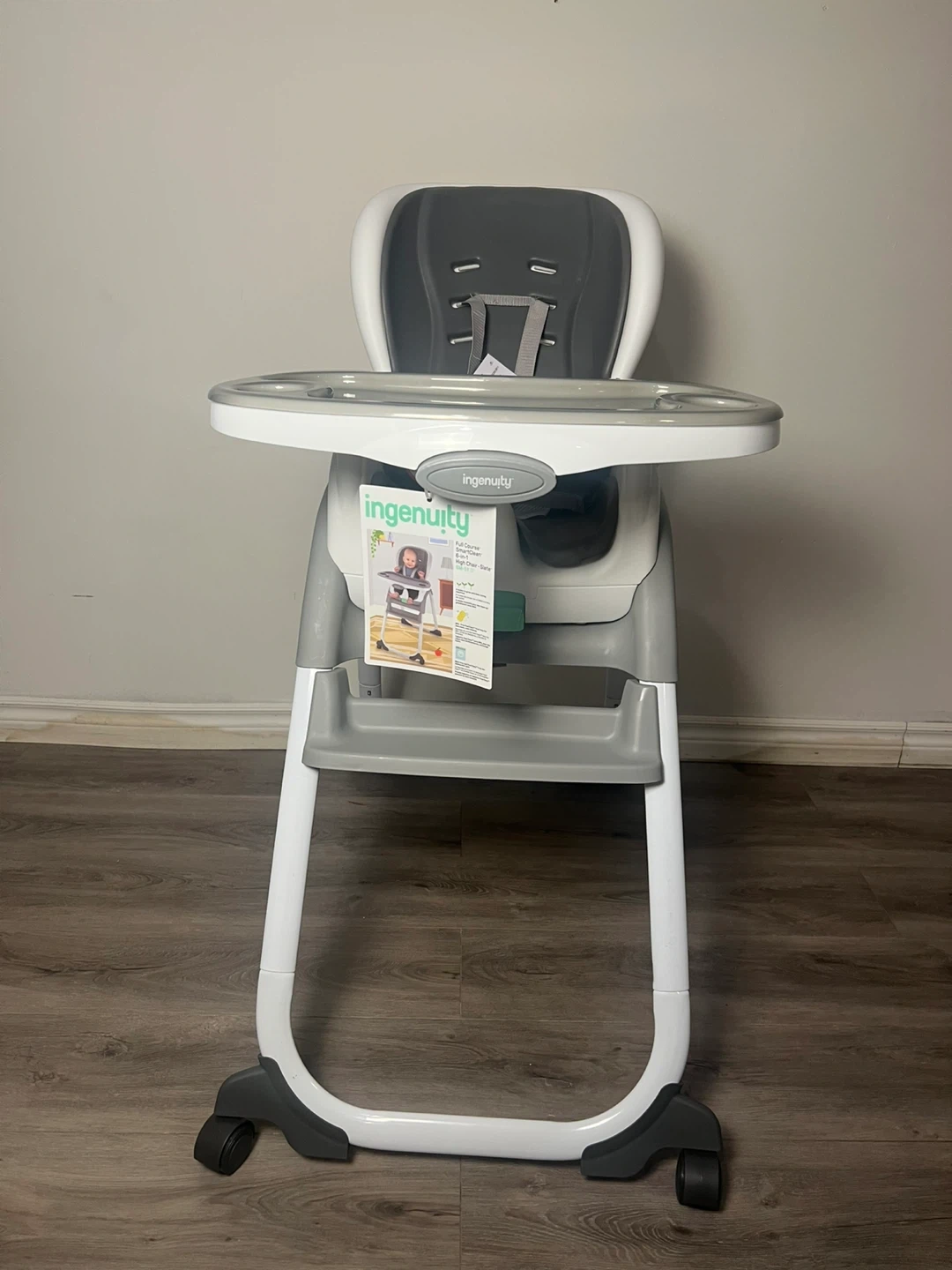 Selling an Ingenuity Full Course SmartClean 6-in-1 High Chair in great condition! This high chair features SmartClean EVA foam, a 5-point safety harness, and dishwasher-safe trays. Originally retailed for $169
