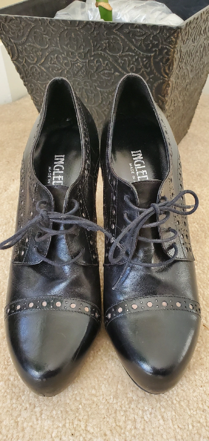 28Selling a pair of Ingledew's heels in black leather! They are size 39 (8.5). These gently worn, stylish and extremely comfortable heels are perfect for adding a touch of elegance to any outfit. Also suited for all day wear.