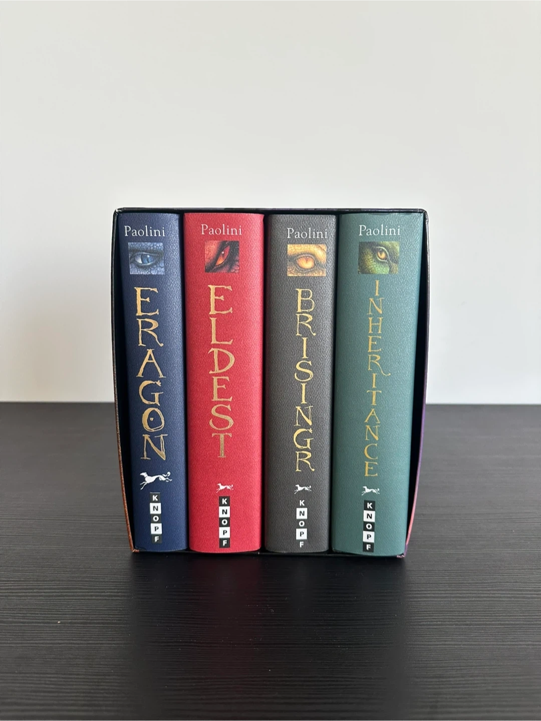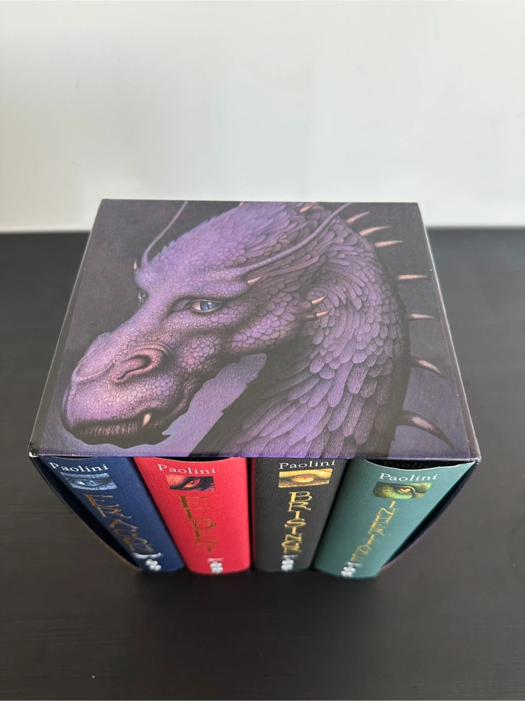 10Selling the complete Inheritance Cycle series by Christopher Paolini! This includes Eragon, Eldest, Brisingr, and Inheritance. All four books come in their original box set. Perfect for any fantasy lover!