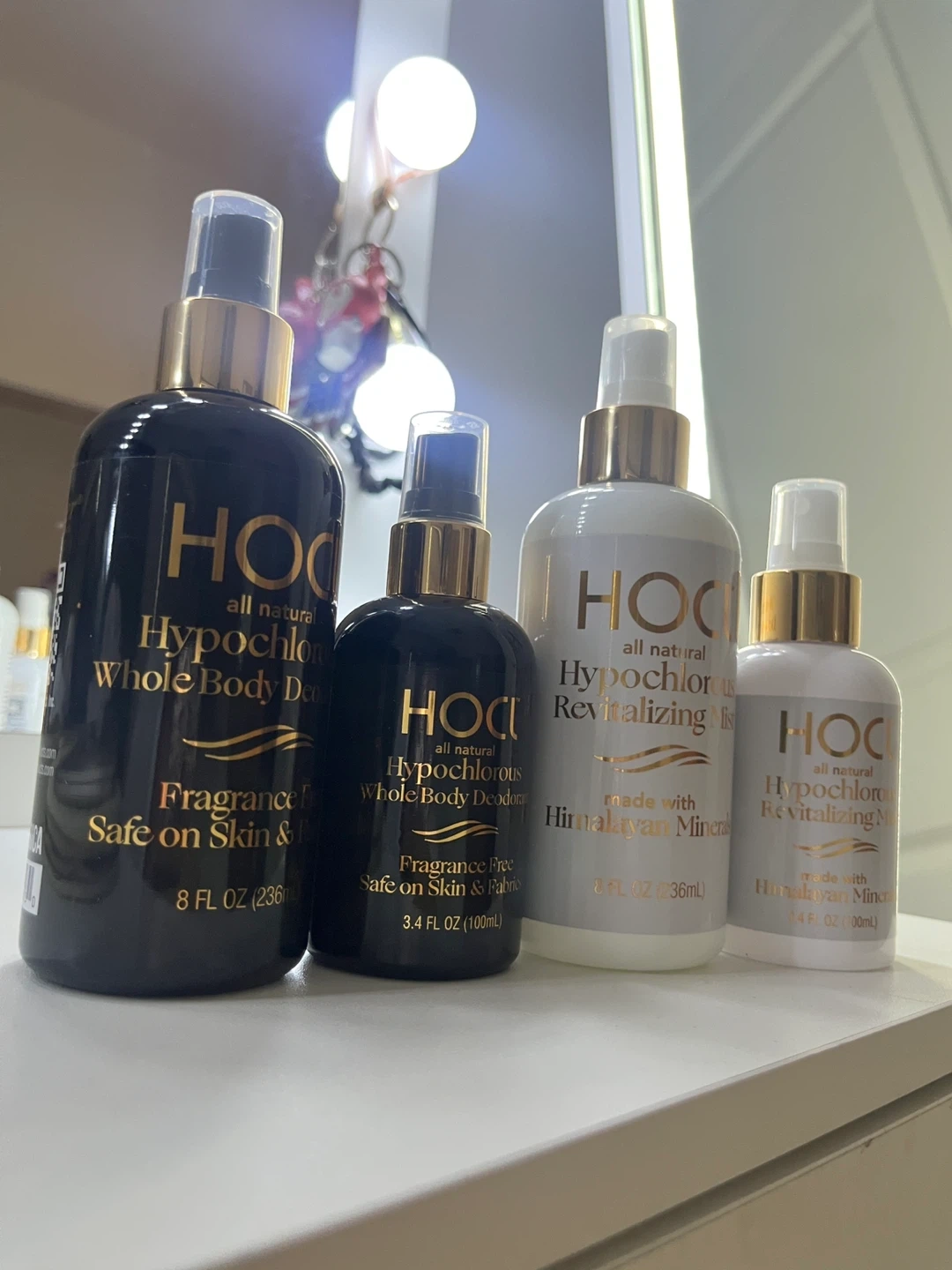 This set includes HOCH all-natural Hypochlorous Whole Body Deodorant and Revitalizing Mist. The deodorant is fragrance-free and safe on skin & fabrics, available in 8 FL OZ (236mL) and 3.4 FL OZ (100mL) sizes. The revitalizing mist is made with Himalayan Minerals and comes in 8 FL OZ (36mL) and 1.4 FL OZ (30mL) sizes. These products are great for personal hygiene and skin refreshing needs.