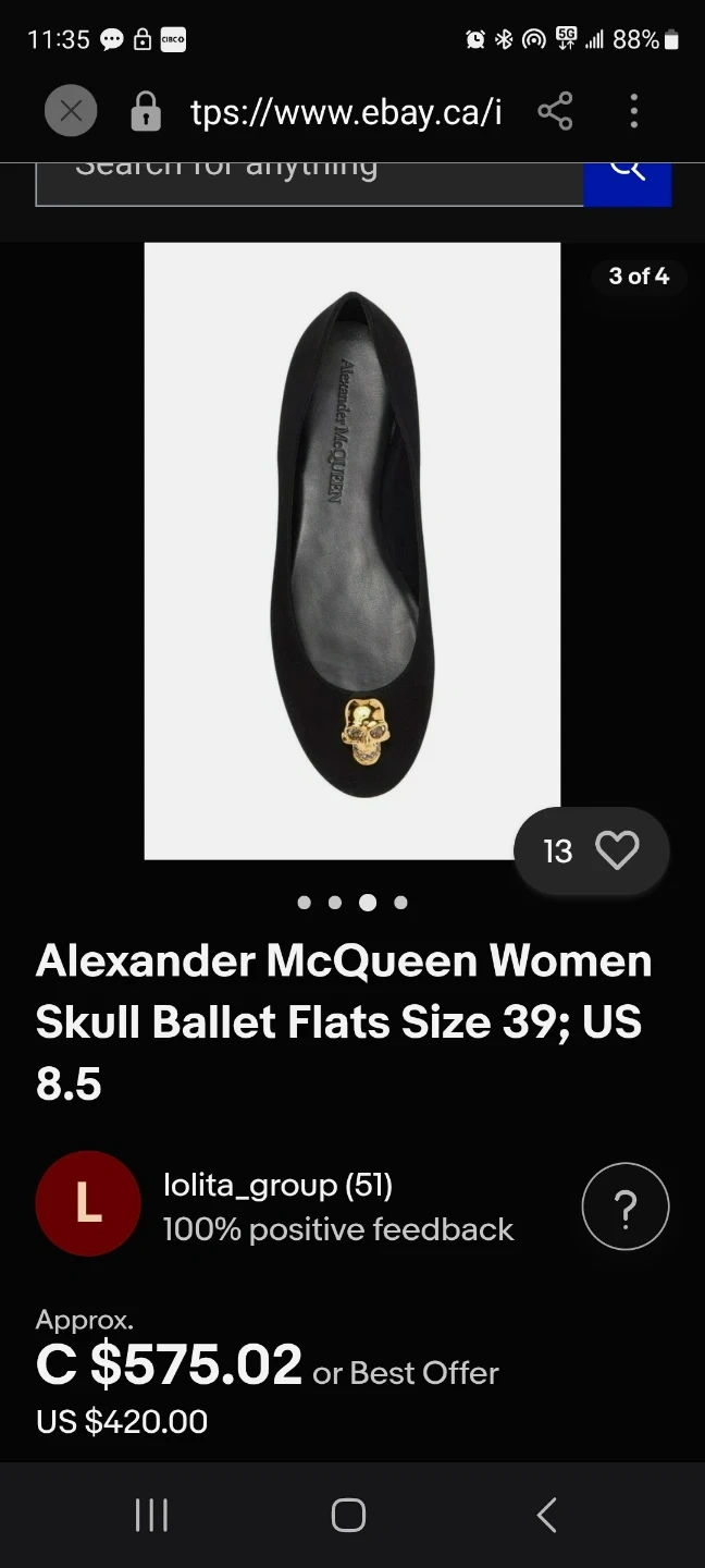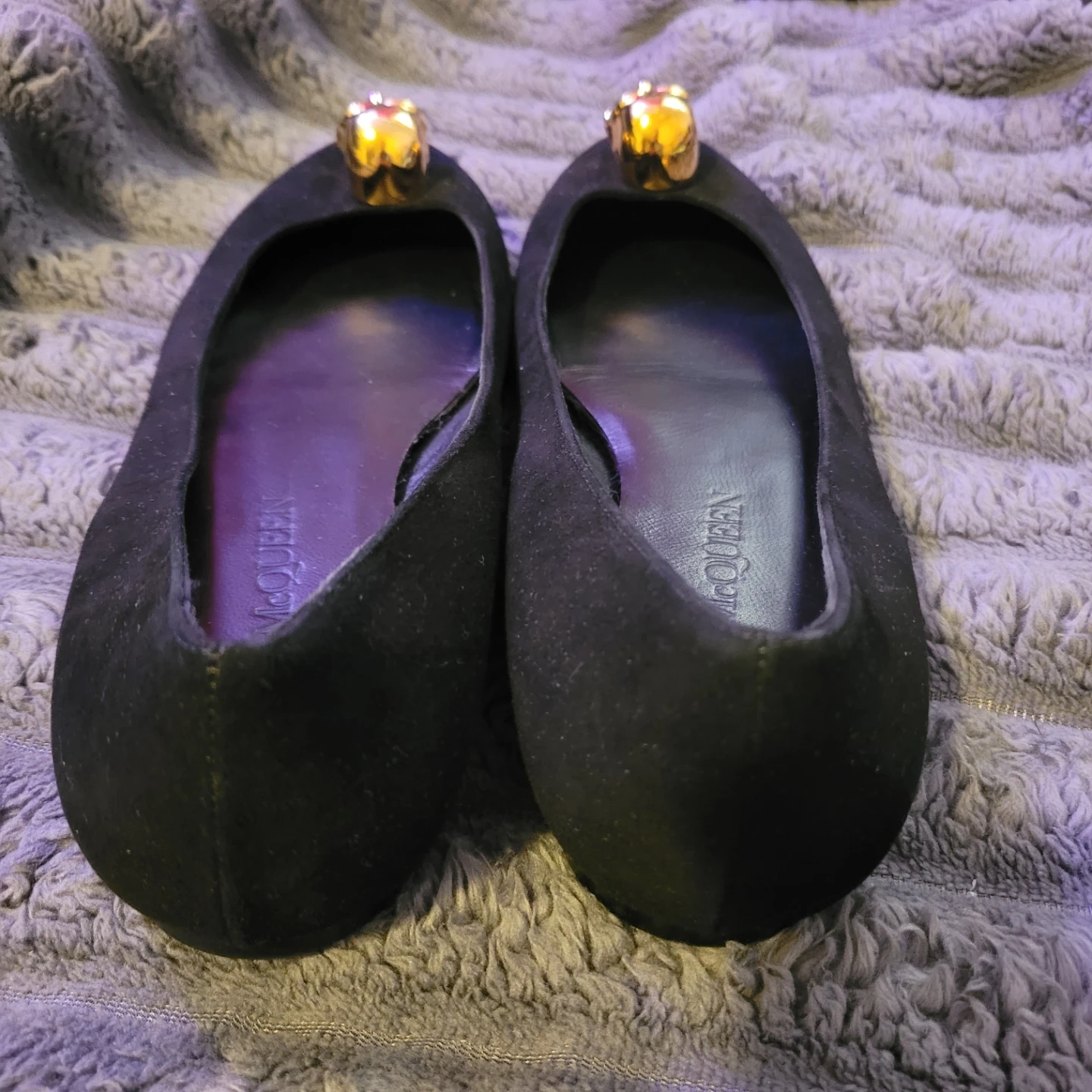 Alexander McQueen Black Suede Skull Ballet Flats 38/7.5us