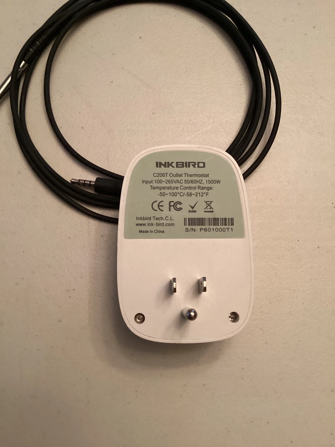 Selling an Inkbird C206T outlet thermostat. It supports an input of 100-265VAC 50/60Hz and 1500W. The temperature control range is 50-100°C/58-212°F. This is perfect for controlling temperature-sensitive devices!