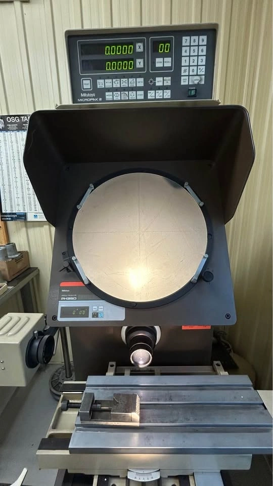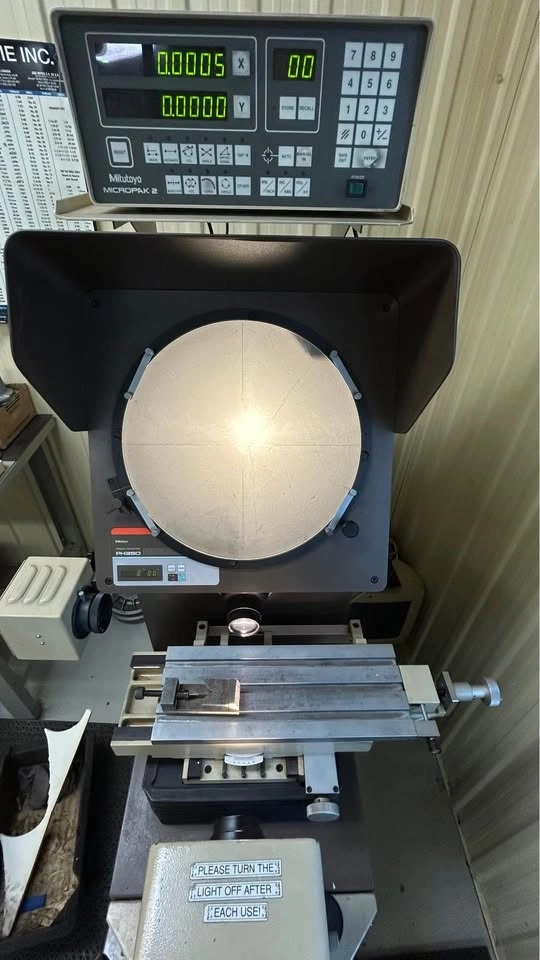 Selling a used Mitutoyo PH350 profile projector, an optical measuring instrument renowned for its precision and versatility. This projector is designed to magnify the profile of parts for accurate measurement and inspection. Its robust construction ensures reliability in various industrial environments.