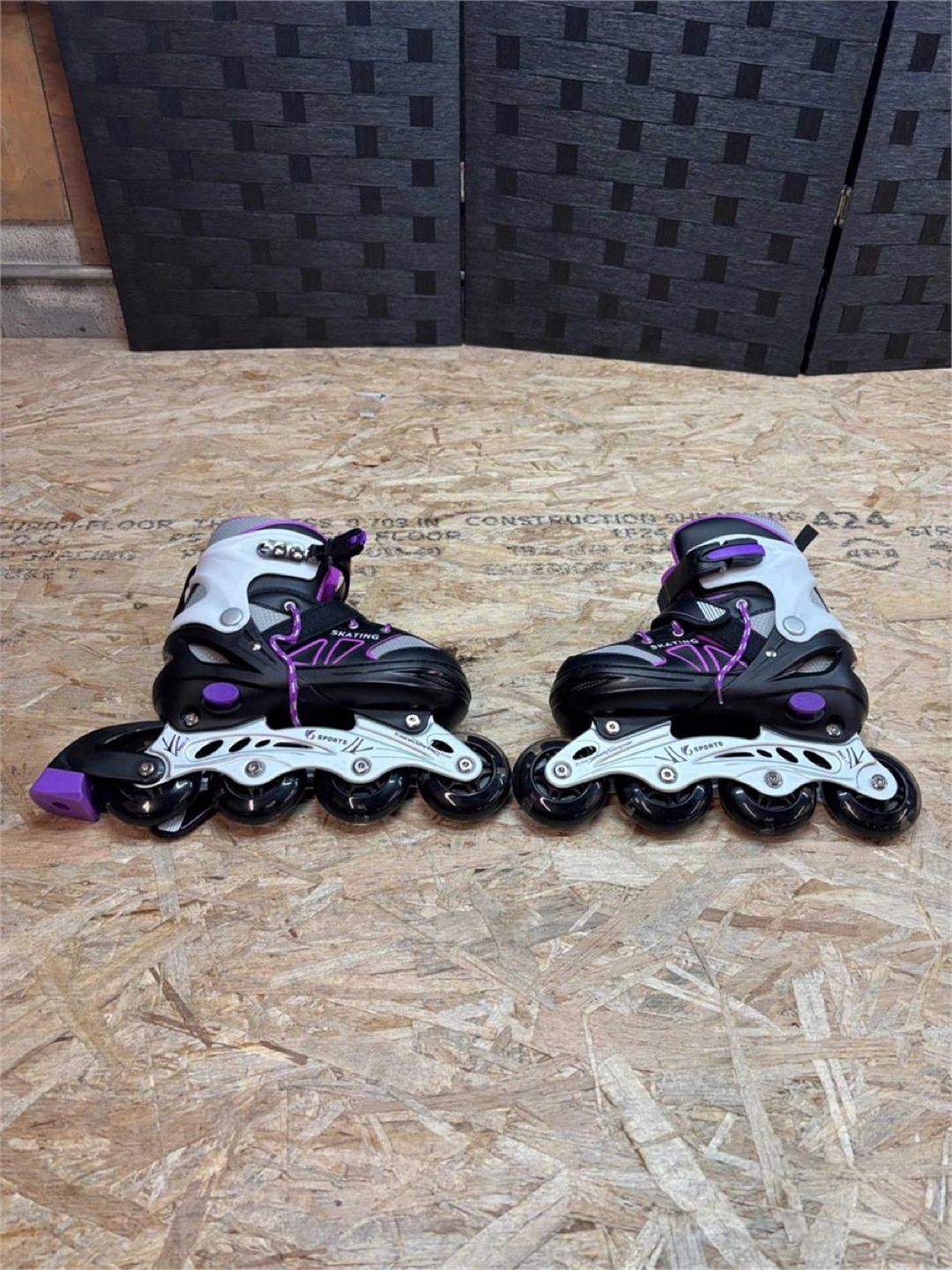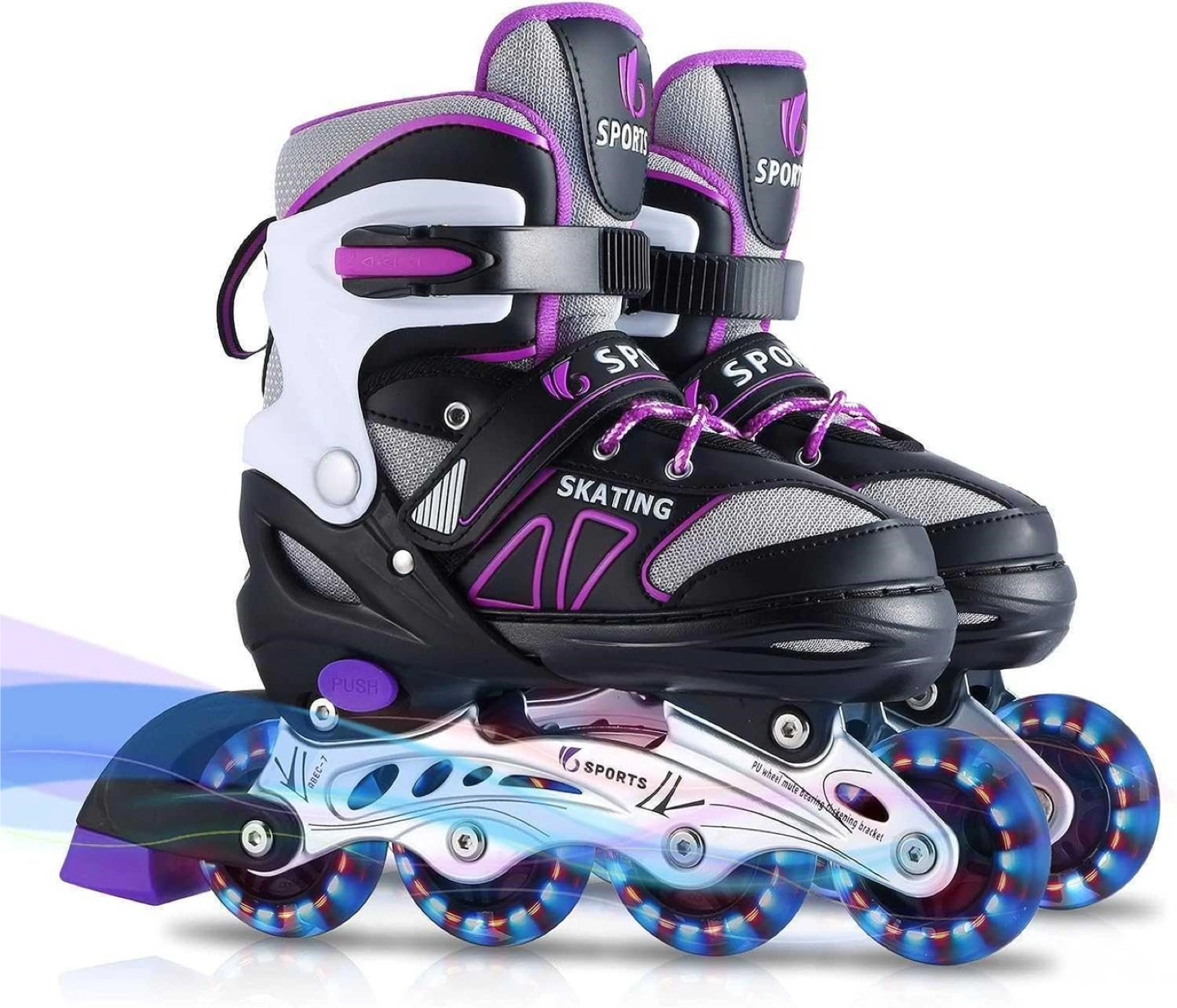 42Inline skates in black, white, and purple colours. Features straps and laces. Wheels light up. A great way to spend some time outdoors. Inline Skates for Kids Girls Boys Beginners, 4 Size Adjustable Size with Light Up Roller Skates for Children, Size Medium(2-5), Purple markham and Ellesmere Scarborough