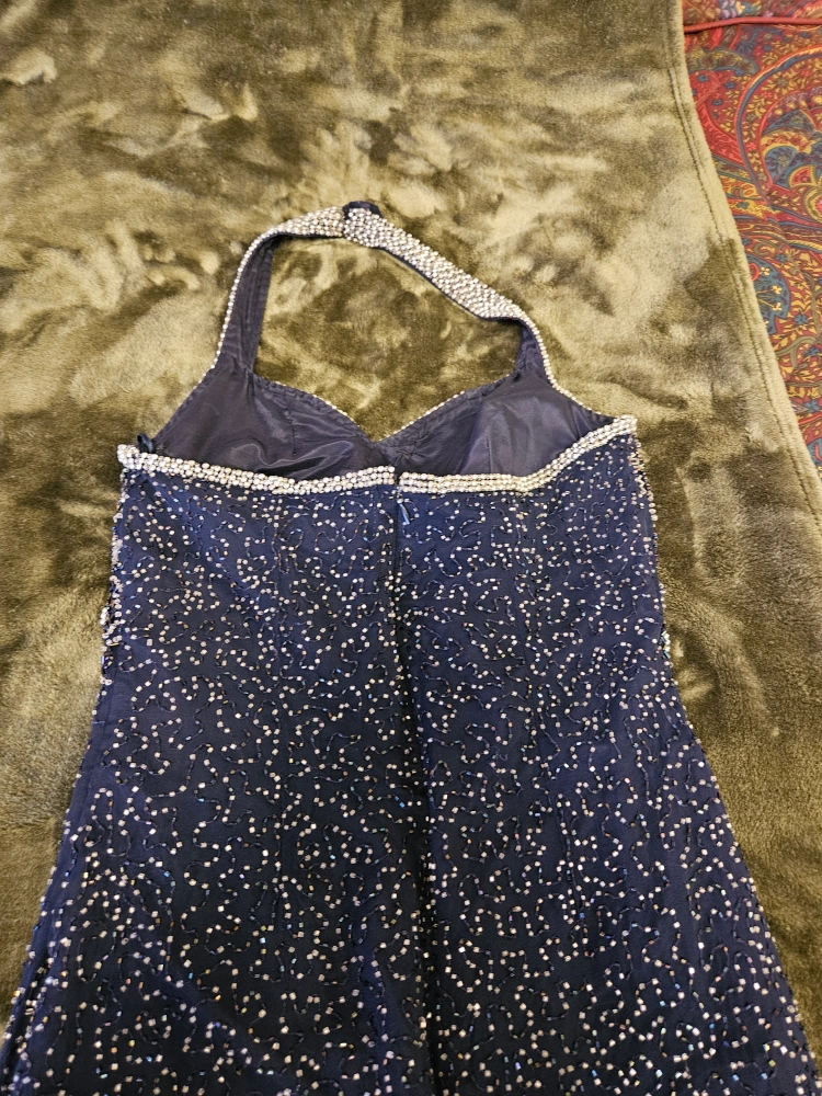 10Selling a beautiful evening gown by Inner Desires by Nikki's! It's a size small and made of 100% pure silk lining and 100% polyester. It has a halter top and a slit on one side. Perfect for a special occasion!