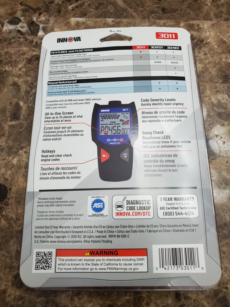 25Code reader, compatible with 1996 and newer OBD2 vehicles. Features all-in-one screen, hotkeys, read and clear check engine codes.