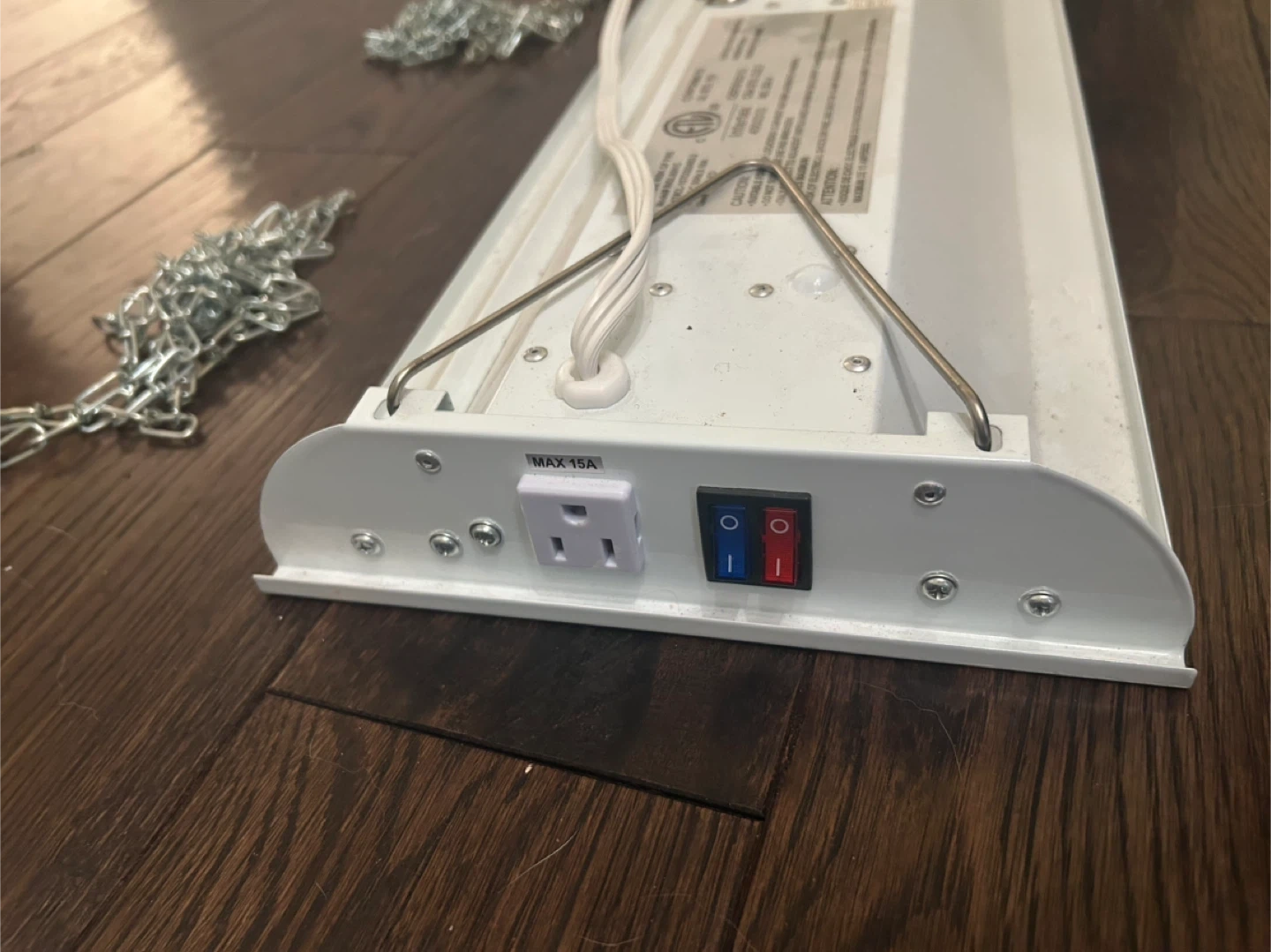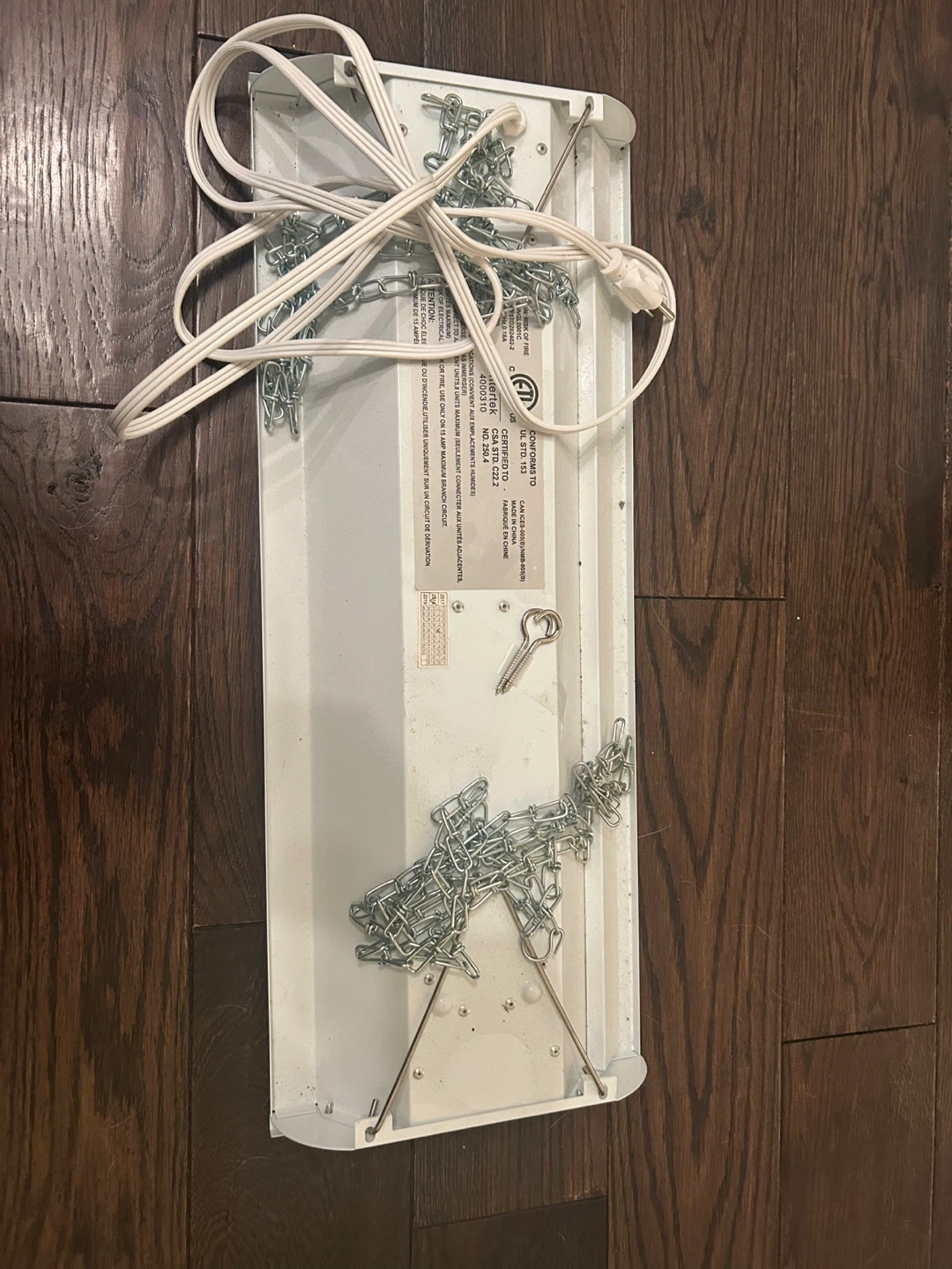 76Here's a LED grow light fixture that's in great shape and ready to help your plants thrive! It comes with chains for easy hanging and has a built-in power outlet for convenience.