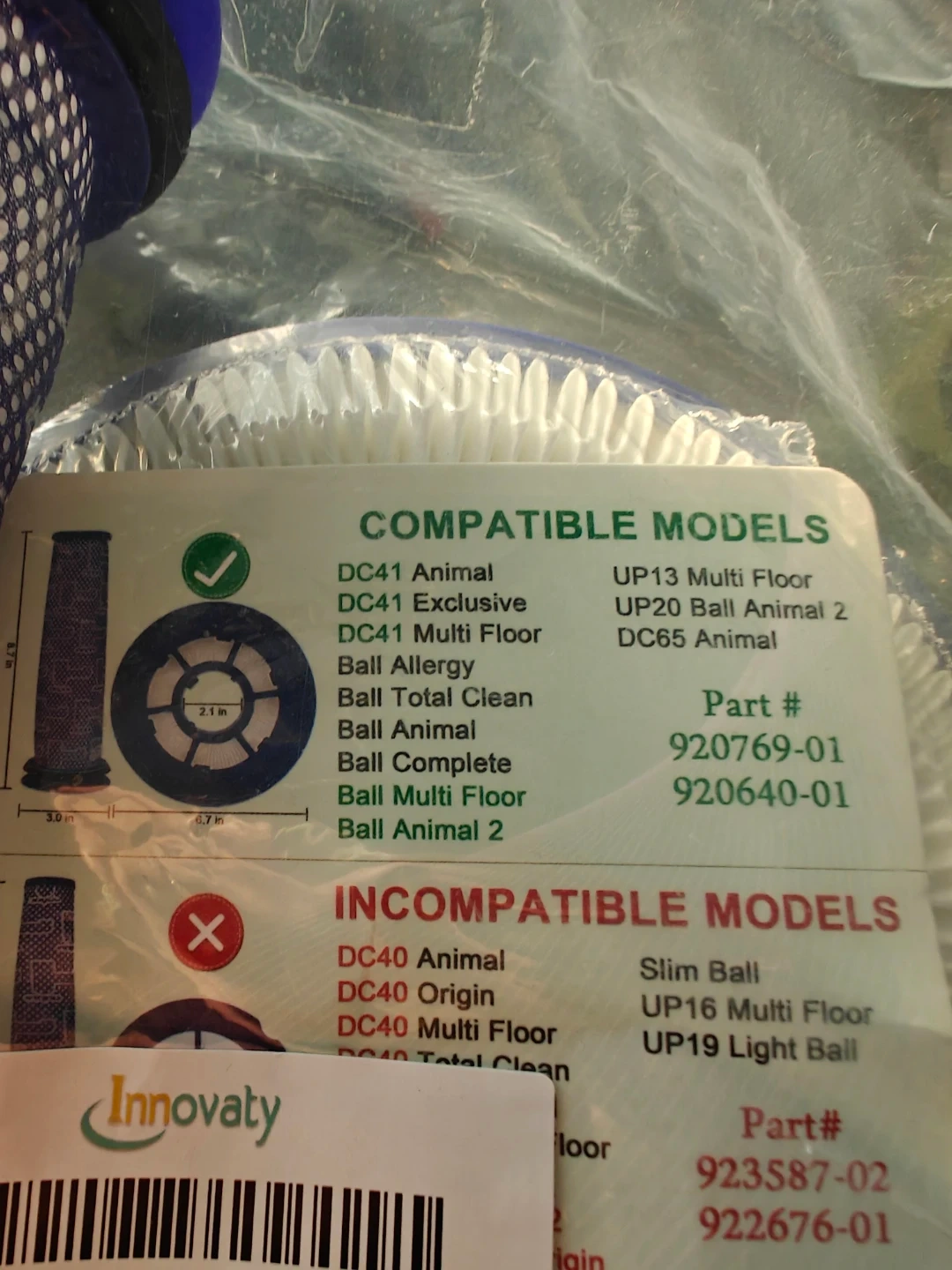 158Brand new Innovaty vacuum filter, still in its original packaging! This filter is compatible with Dyson DC41 Animal, DC41 Exclusive, DC41 Multi Floor, Ball Allergy, Ball Total Clean, Ball Animal, Ball Complete, and Ball Animal 2 models. Please check the pictures to see if it works for your model.