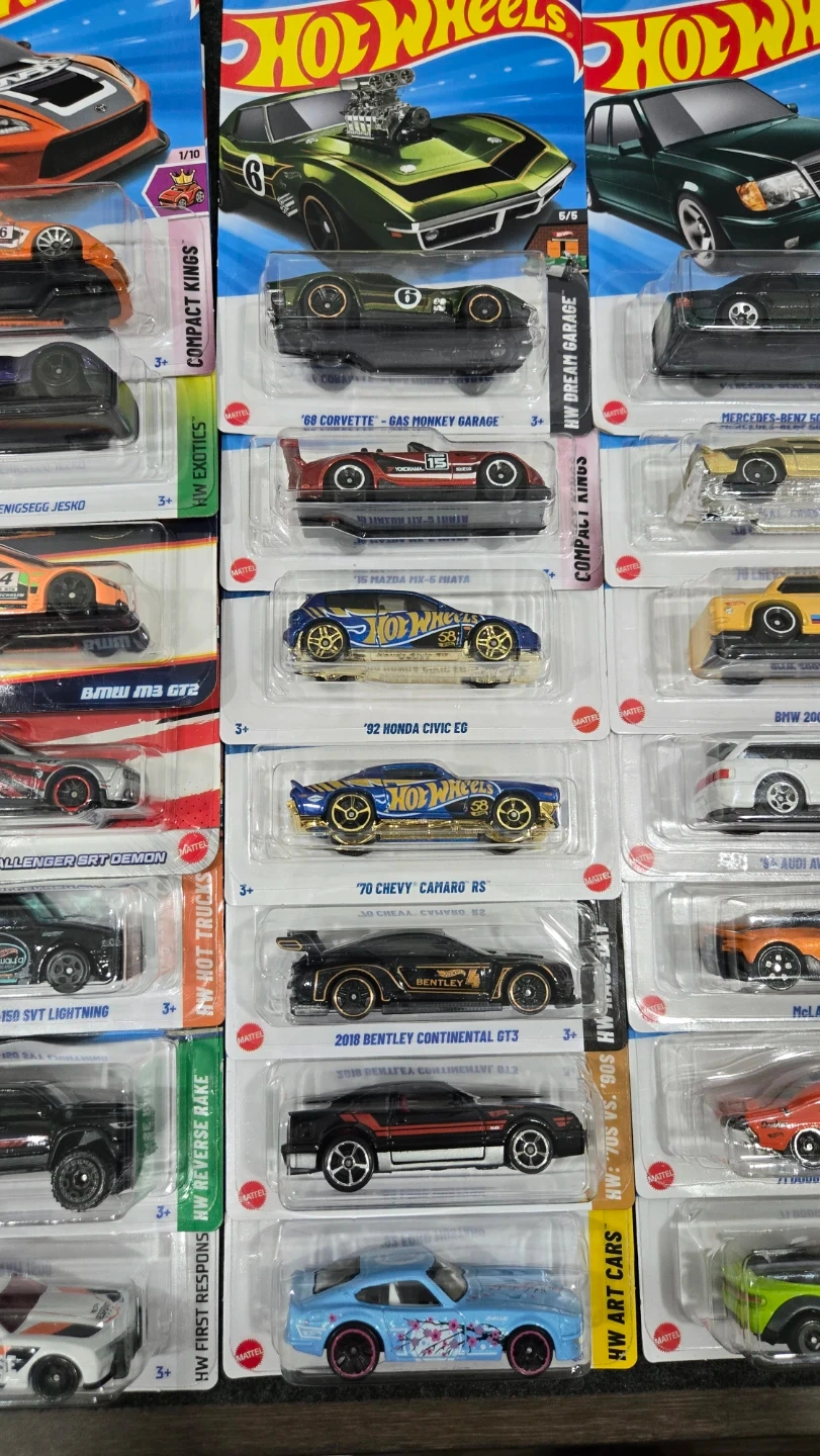 This is a collection of Hot Wheels die-cast cars. Various models and colours are included. Recommended for ages 3 and up.