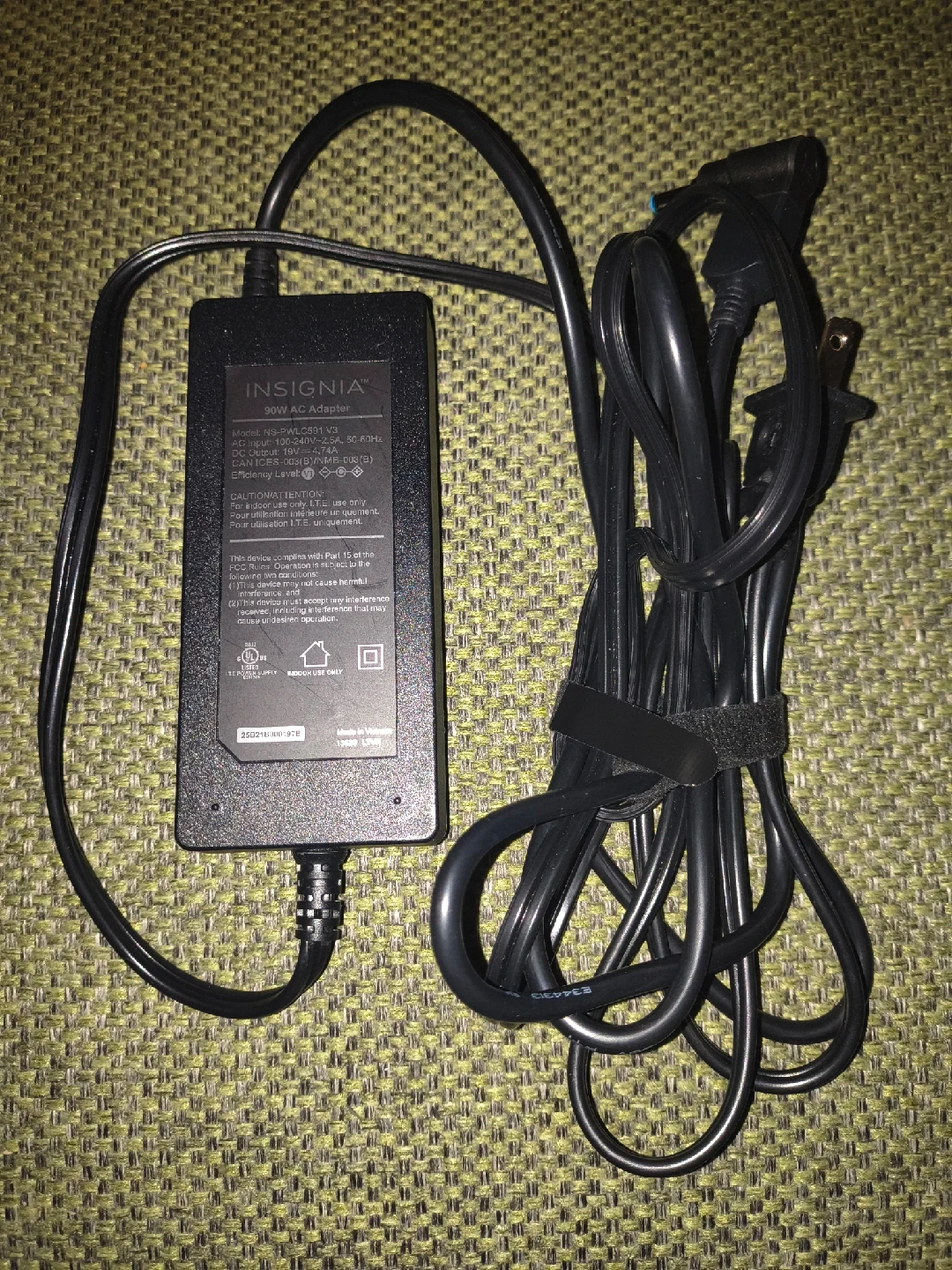 10Selling an Insignia 90W AC Adapter. This adapter is in great condition and ready to power your device! It's a reliable replacement for your original adapter Brand: Insignia Model: NS-PWLC591 Type: 90W AC Adapter Output: 19V ⎓ 4.74A Connector tip: Blue-ring barrel (commonly used by HP, Dell, and some Alienware laptops) Intended use: General-purpose laptop charger — Insignia makes these as universal or replacement adapters, not tied to one brand only. (NS-PWLC591) is usually compatible with many Dell and Alienware laptops that use a 7.4mm x 5.0mm barrel connector with a blue ring.