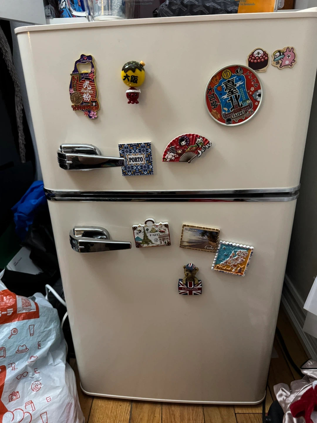 100Selling an Insignia retro mini fridge in cream colour. It's in great condition and perfect for a small space or extra storage. Great for a dorm room or apartment! Moving out but it still works perfectly fine.