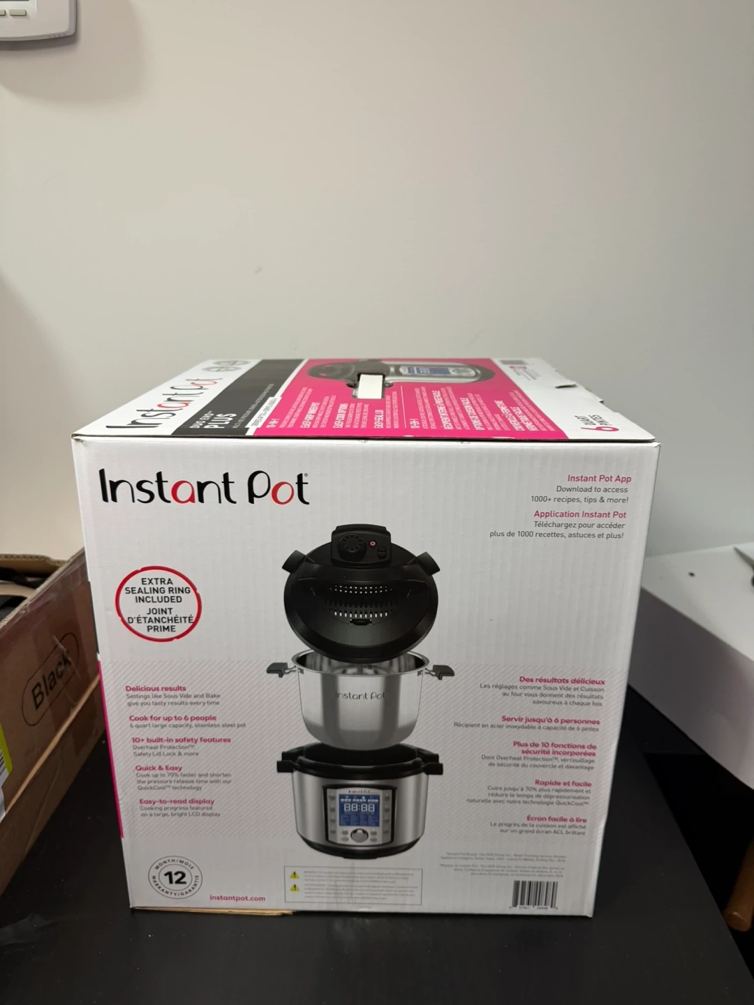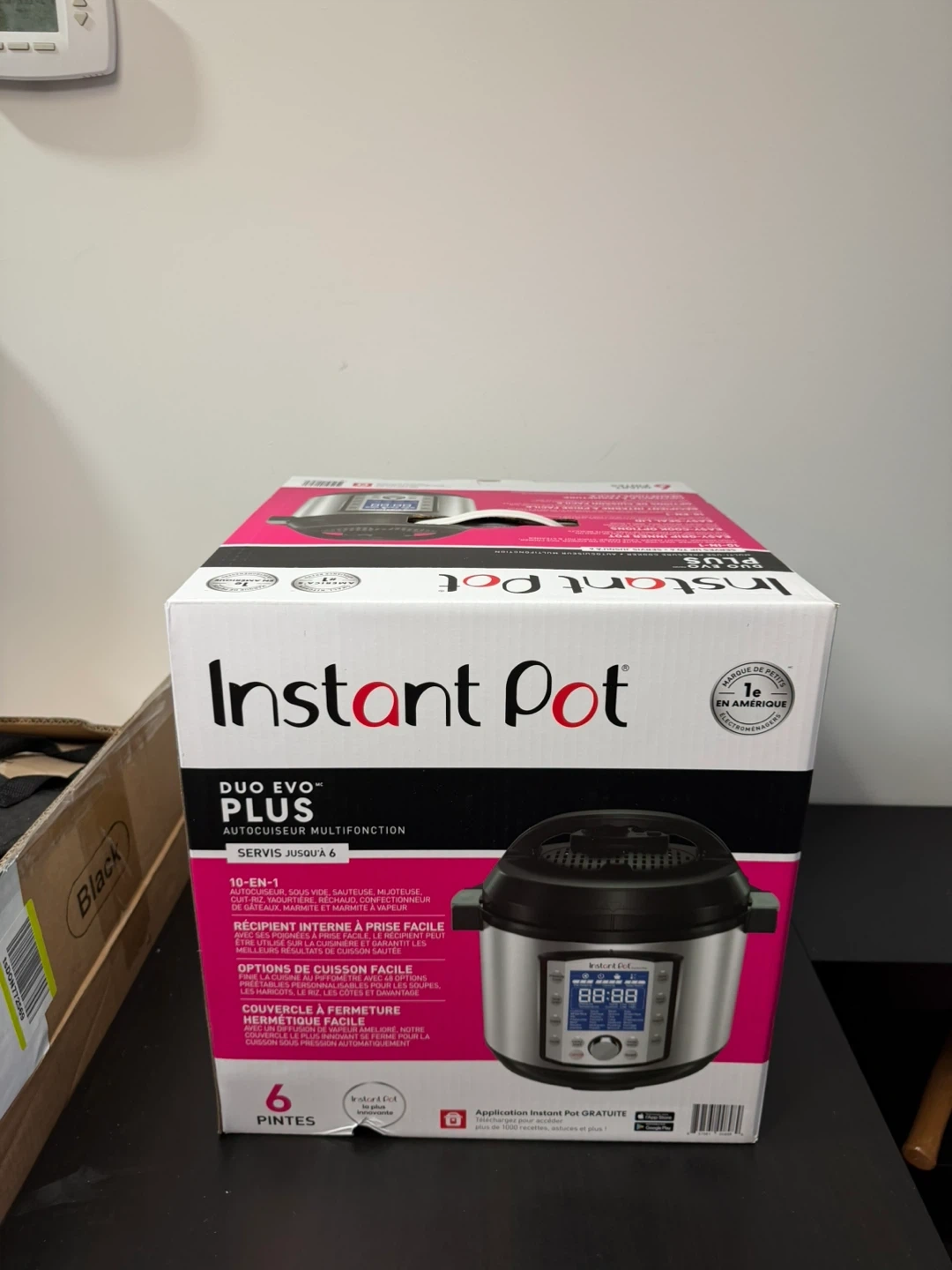 Brand new Instant Pot Duo Evo Plus 6-Quart Multi-Use Pressure Cooker, sealed in box. This versatile kitchen appliance offers 10-in-1 functionality – pressure cooker, slow cooker, rice cooker, sauté pan, yogurt maker, steamer, sous vide, bake, warmer, and stock pot. Perfect for fast, convenient meals for up to six people, with easy-grip inner pot, quick-cook options, and a simple-to-read display. High quality and trusted brand, never used, includes all original packaging. - Authentic Instant Pot Duo Evo Plus (6 Qt) - 10-in-1 functionality: pressure cooker, slow cooker, rice cooker, steamer, sauté pan, sous vide, bake, yogurt maker, stock pot, warmer - Easy-seal lid and easy-grip inner pot for safe handling - Cooks up to 6 servings – ideal for families or meal prep - Brand new, never opened, sealed in box with all accessories Retails around: $170 plus taxes in Canada. Pick Up Location: Jarvis Street. Condition: Brand new, sealed box, never used.