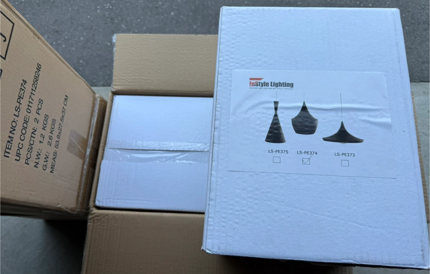 Add a touch of modern elegance to your space with this InStyle Lighting LS-PE374 pendant light! It features a sleek black finish with a gold interior. The box includes 2 pieces and weighs approximately 2.6 kg. Its measurements are 53.8x27.8x37 cm
