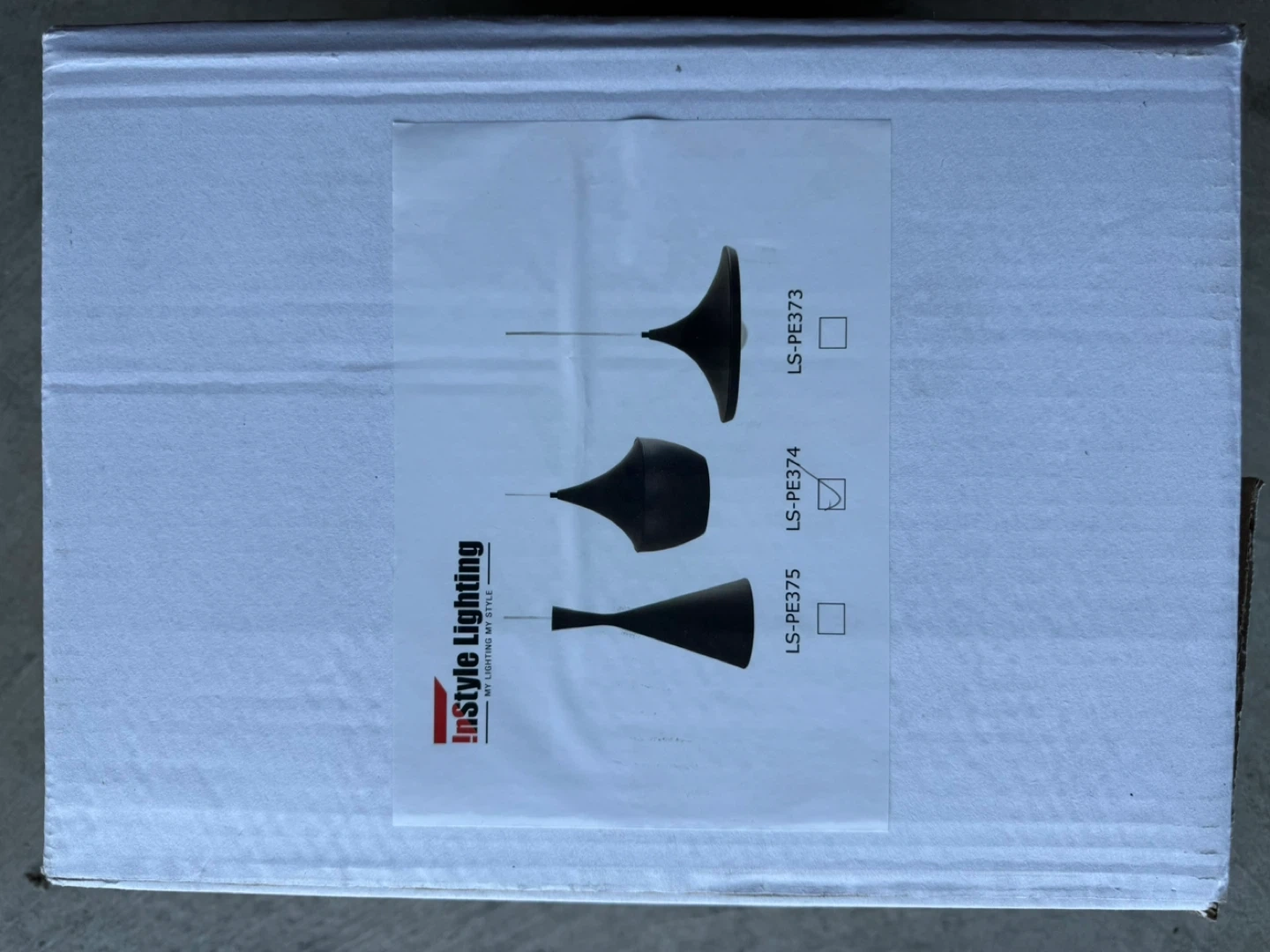 Selling an Instyle Lighting pendant light, model LS-PE374. It features a stylish black finish and comes with the original box. Perfect for adding a modern touch to any room!