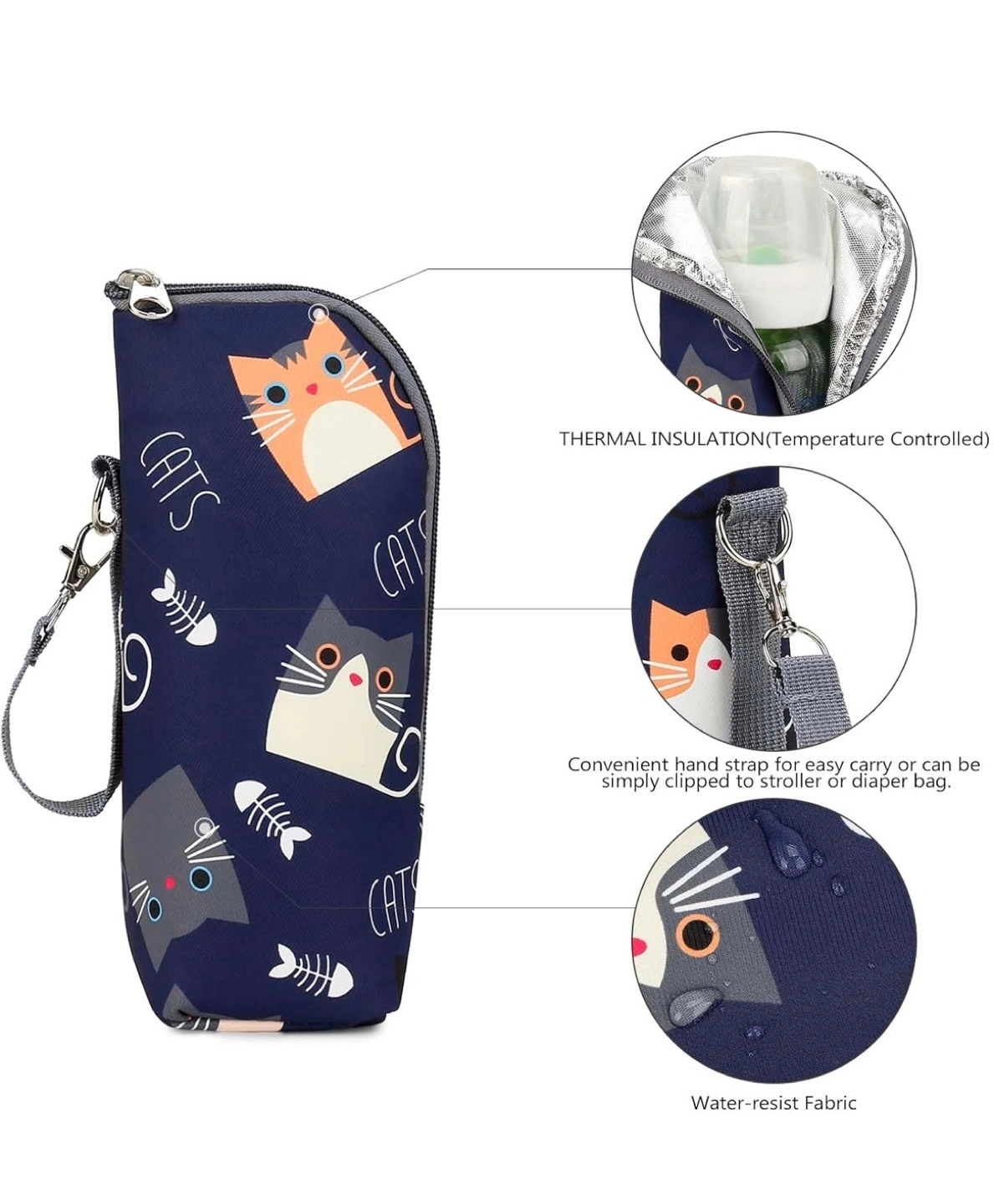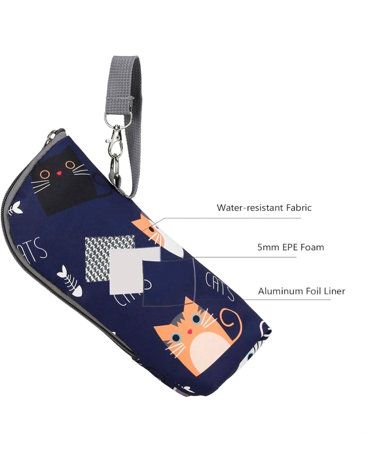44Keeps milk at the perfect temperature for 4-6 hours. BPA-free and Phthalate-free materials. Fits two standard size bottles. Water-resistant fabric. Convenient hand strap or stroller clip. Carry other drinks and snacks.