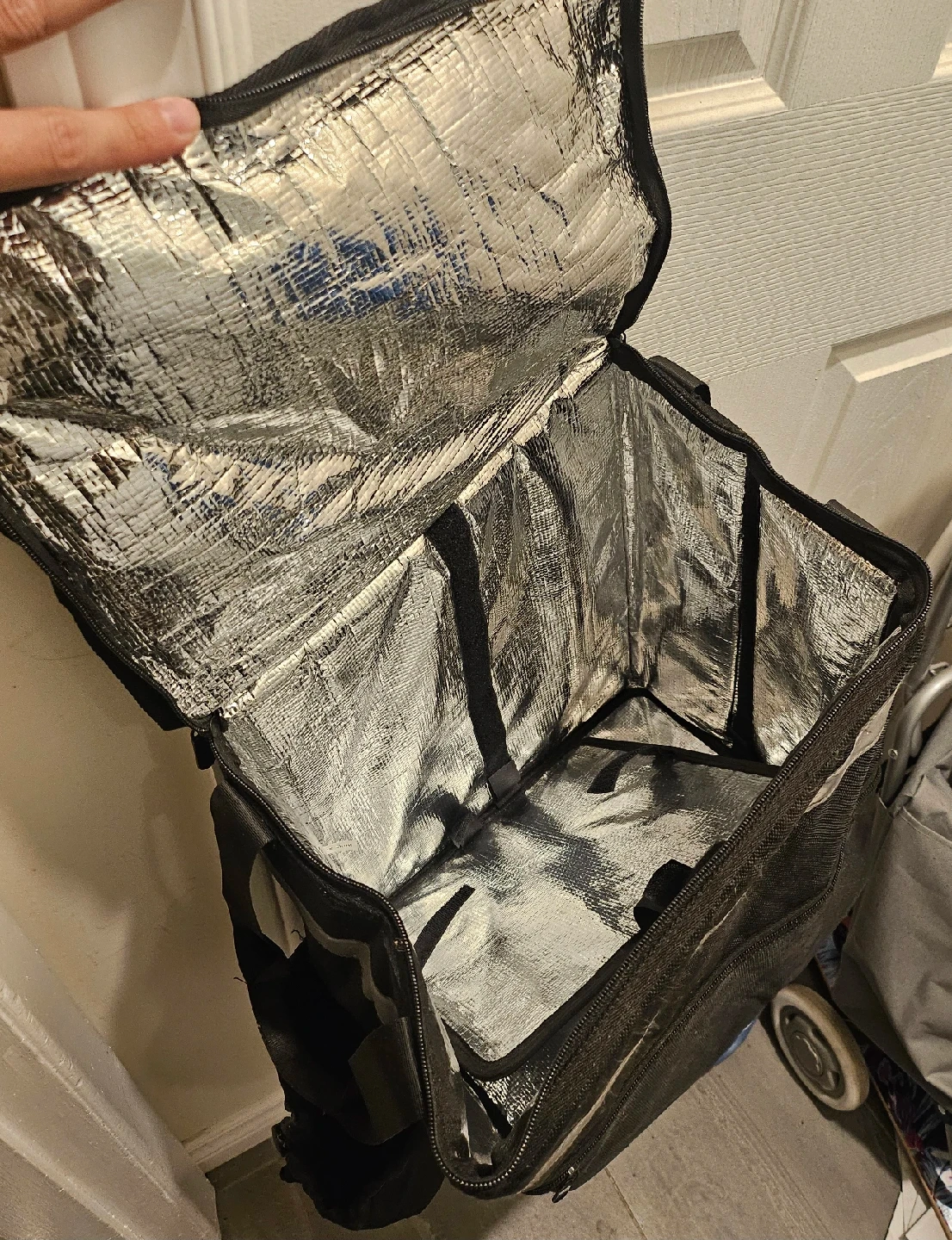 39Selling a handy insulated food delivery bag! It's great for keeping food hot or cold while you're on the go. Perfect for food delivery drivers or anyone needing to transport meals. It's in good condition and ready for its next adventure