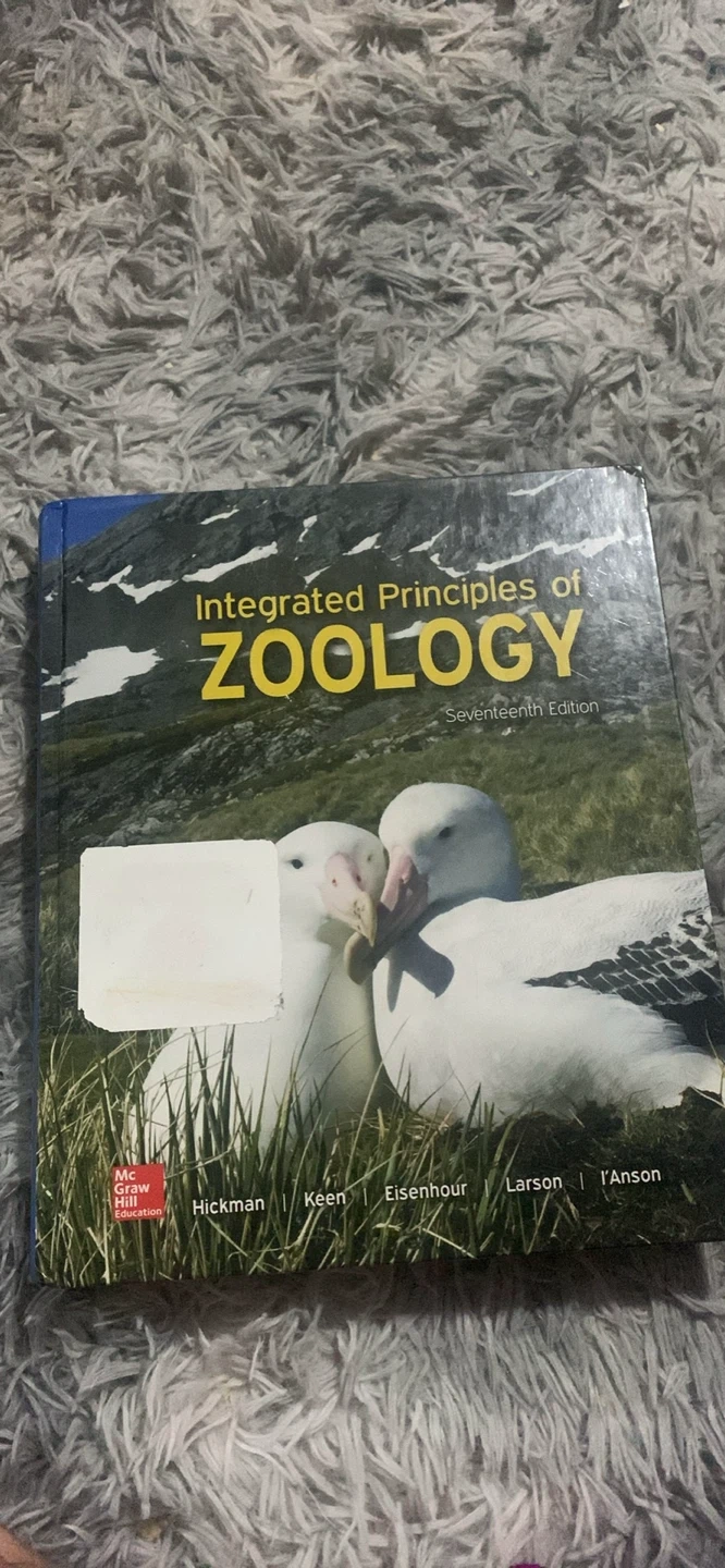 Selling a copy of "Integrated Principles of Zoology, Seventeenth Edition" by Hickman, Keen, Eisenhour, Larson, and L'Anson. Great for students studying zoology or anyone interested in learning more about the animal kingdom! It's in good condition and ready for a new owner