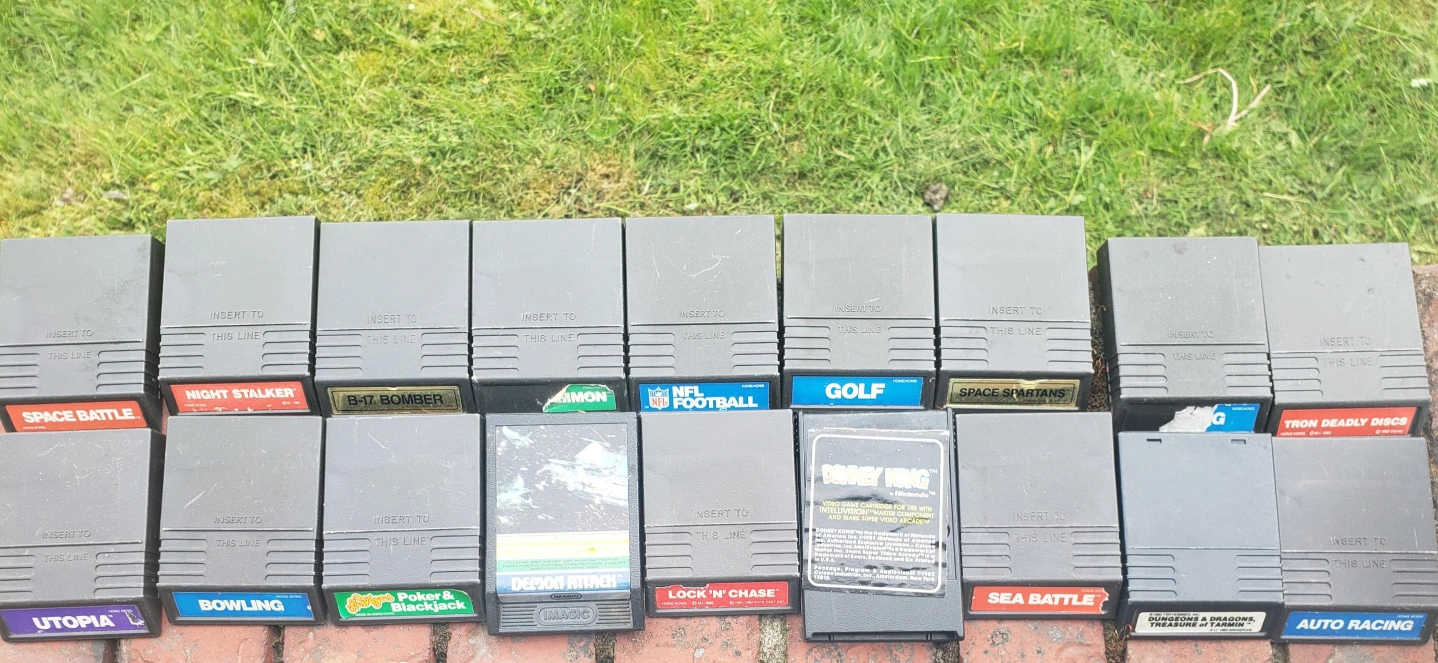 10Selling a collection of Atari Intellivision game cartridges! Includes titles like Space Battle, Night Stalker, B-17 Bomber, NFL Football, Golf, Space Spartans, Utopia, Bowling, Poker & Blackjack, Demon Attack,, Lock 'N' Chase, Tron Deadly Discs, Sea Battle, Dungeons & Dragons Treasure of Tarmin, and Auto Racing