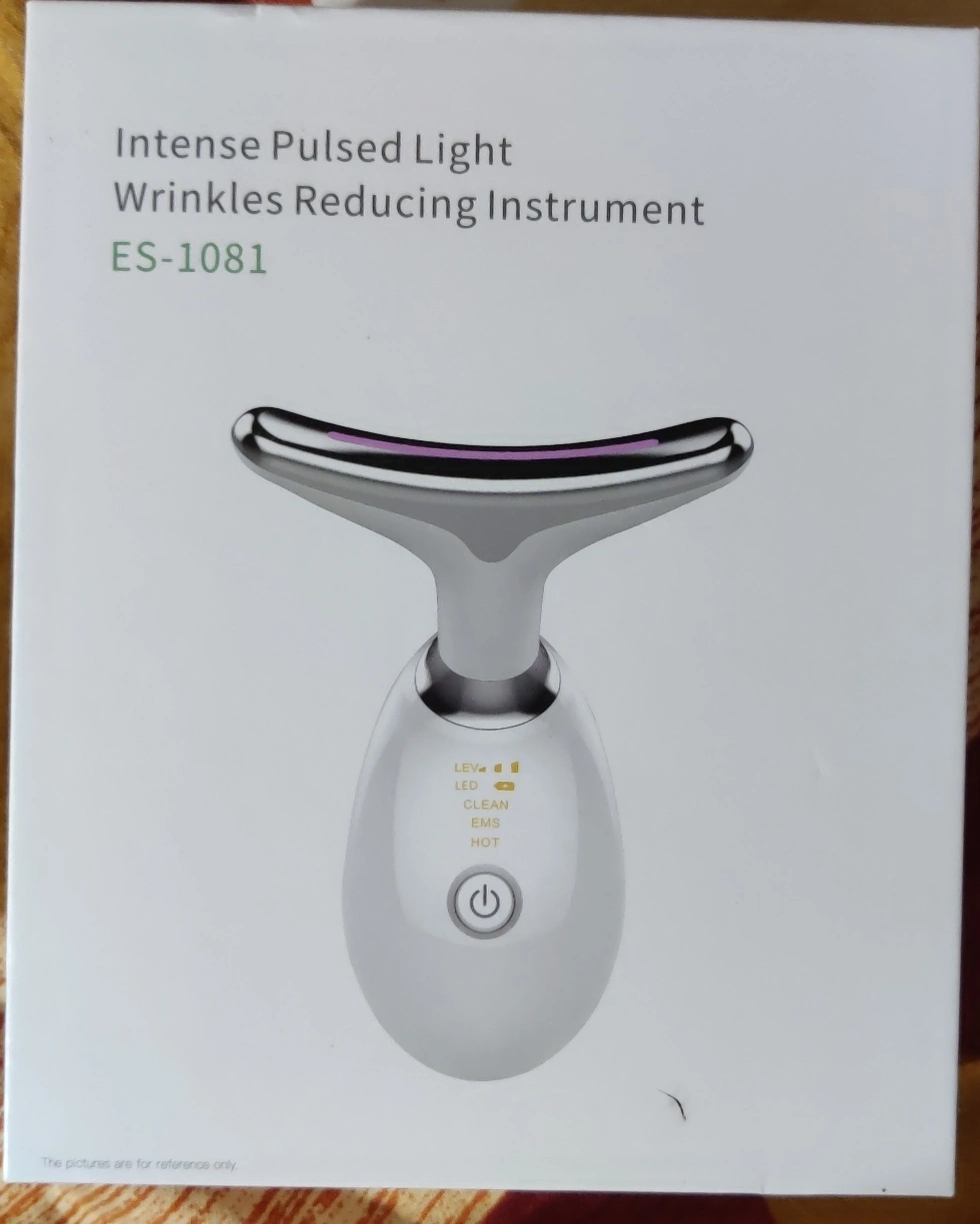 Selling an Intense Pulsed Light Wrinkles Reducing Instrument, model ES-1081. It comes with the box and a charger. This instrument is designed to help reduce wrinkles using intense pulsed light technology. It has different modes such as LED, CLEAN, EMS, and HOT. Feel free to ask if you have any questions!