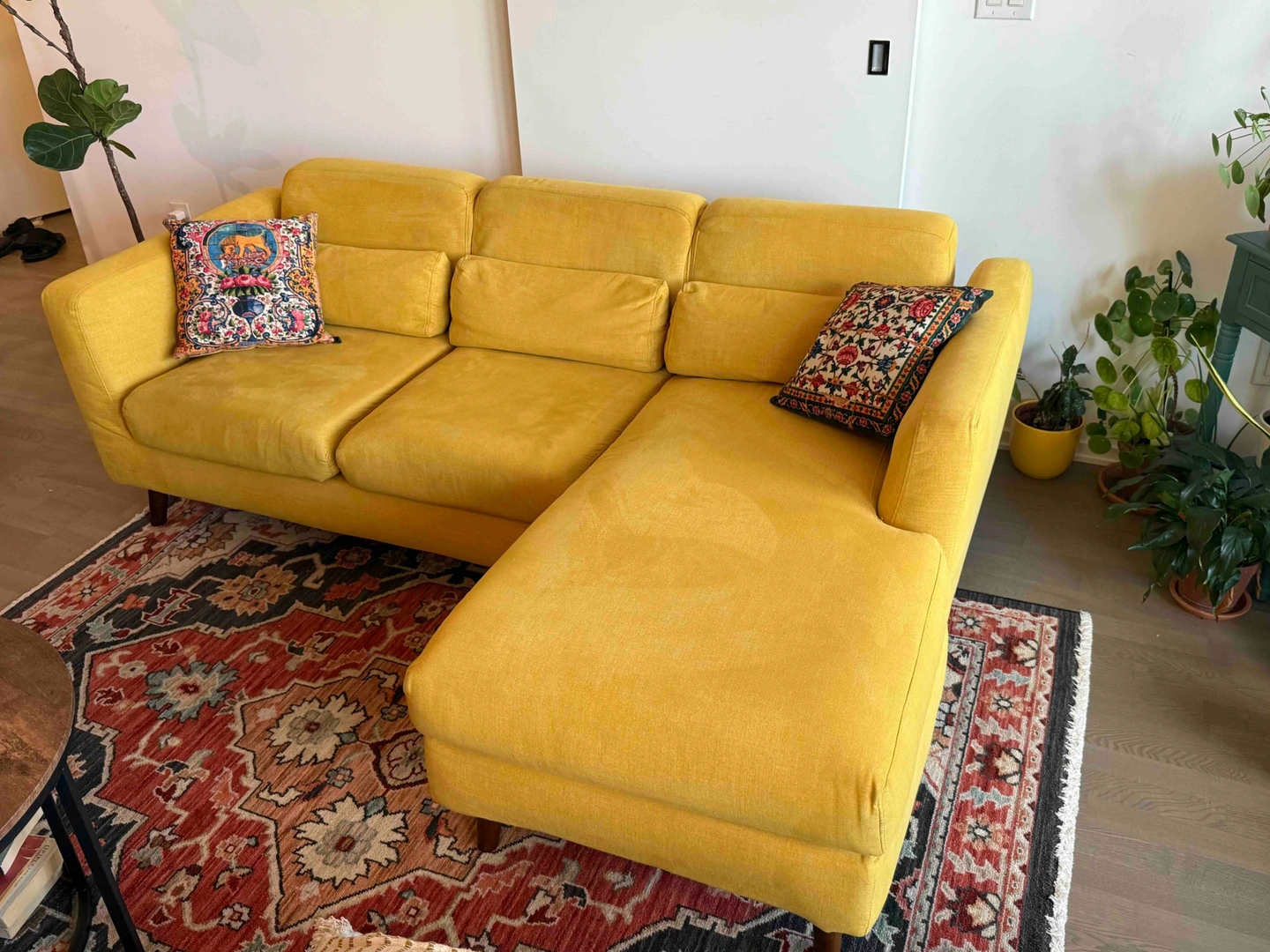 60Clean comfy modern couch for sale. Seats 3 comfortably, great condition with no tears. Perfect for living rooms or apartments. Pick up only (Yonge and Bloor)