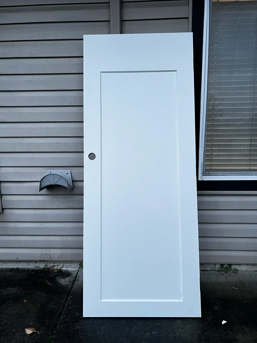 73White interior door Its like brand new condition No stains or damage Left-Hand Inswing **(In picture door is upside down) Measurements: •Door Slab height - 80” •Door Slab width: 32 •Door Slab depth -1¾ Pre-drilled for standard 2-1/8 in lockset hole -36” in from bottom) *Hinges or door lock not included Pickup 150 and 69 avenue