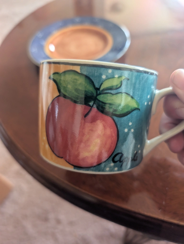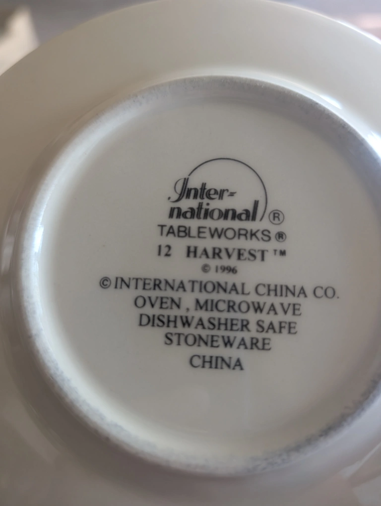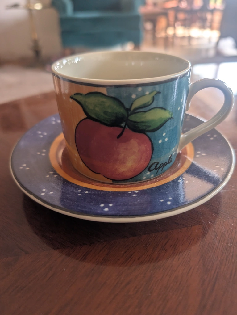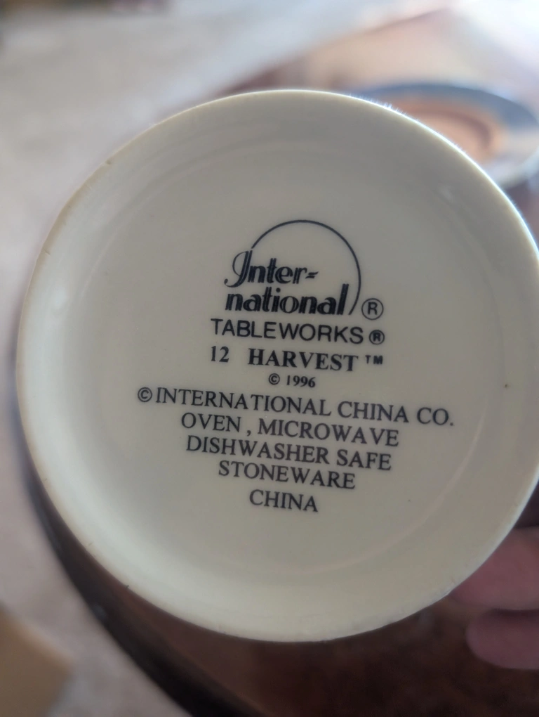 22Selling a selling a set of 12 mug and plate set from International Tableworks, Harvest collection! The mugs feature atures a fruit design and the plate has a matching colour scheme. Never used and the set is in great condition and ready for a new home
