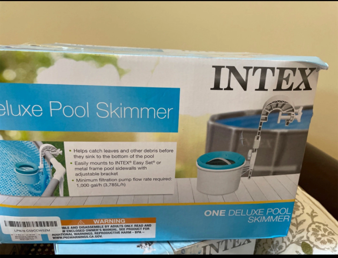 Selling a brand new Intex Deluxe Pool Skimmer, still in its original box! It easily mounts to Intex Easy Set or metal frame pool sidewalls with an adjustable bracket. It helps catch leaves and other debris before they sink to the bottom of the pool. The minimum filtration pump flow rate required is 1,000 gal/h (3,785L/h). Asking $30 for both