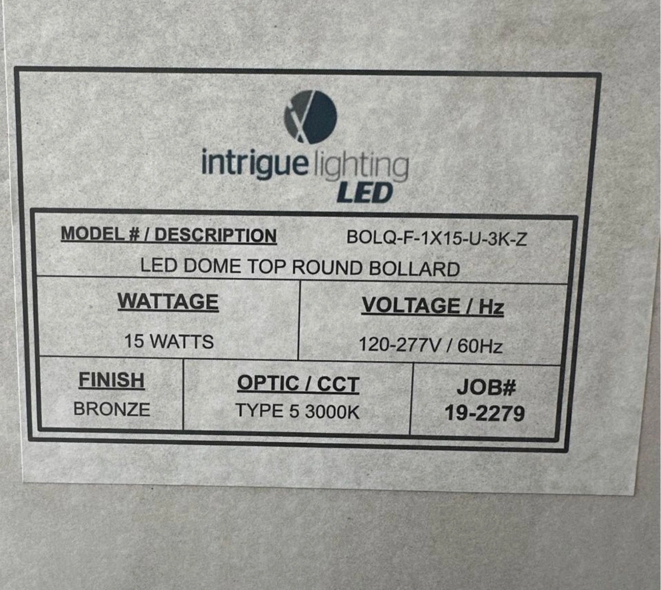 18Bronze LED Bollard - 15 watts 120-277V, 60Hz. 3000K Brand new 13 pieces total Dark brown almost black In box, one out for pictures Bought by mistake can’t return, our loss your gain ( original price $500 each)