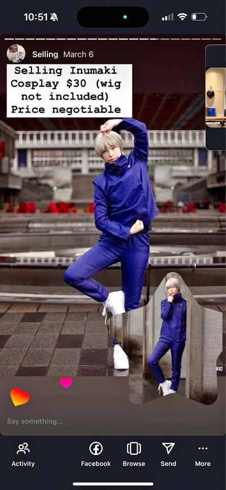 15Navy Blue Inumaki cosplay ‼️IT COMES WITH THE WIG SO IGNORE WHAT THE PHOTO SAYS‼️! Really comfortable with a stretchy waist size small, nothing wrong with it I just need a bigger size :)