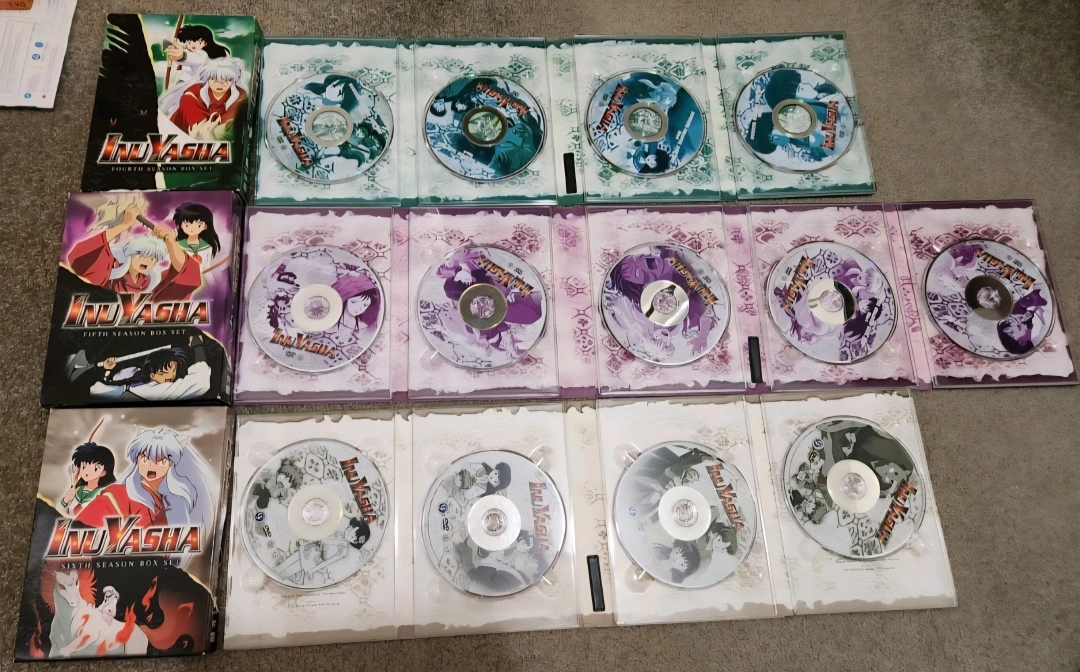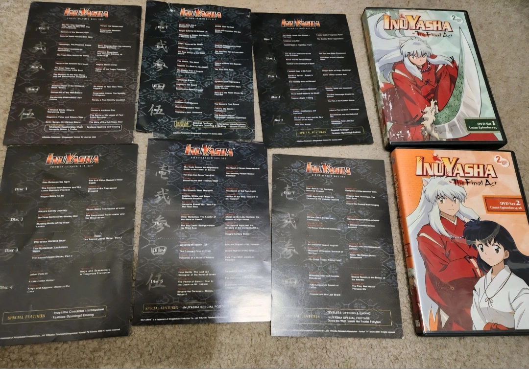 Embark on a thrilling adventure with the complete anime DVD box set of "Inuyasha." This comprehensive collection includes English versions of Seasons 1 - 7, inviting fans and newcomers alike to experience the epic tale of love, destiny, and the battle for the Shikon Jewel. Crafted by Viz Media, each DVD promises a high-quality viewing experience of this acclaimed action and fantasy series. Preowned All discs are in excellent shape the dvd box holders are ruff around the edges and season 4 has a rip on the bottom of the box otherwise good. English version. Cash Only.