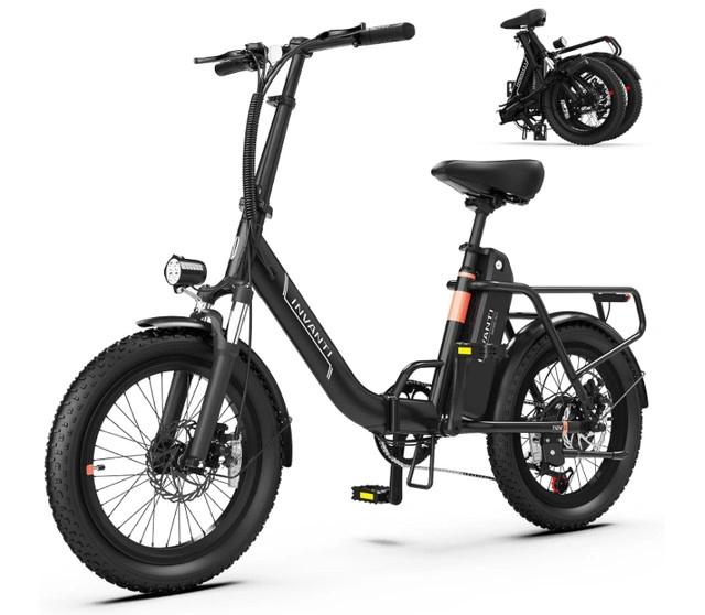 340Take on any adventure with the INVANTI foldable e-bike, perfect for commuting, trails, or snowy rides. With its powerful motor, dual suspension, and long-lasting battery, it's built for both power and comfort. Folds easily to fit in a trunk or RV. Key Features: 1000W Peak Power Motor: Reach speeds of 32–40KM/H (20–25MPH) and climb up to 15% inclines with ease. 72KM Long Range: Travel up to 40KM on pure electric or 72KM with pedal-assist using a 499.99Wh removable battery. * Still in good shape, used for about 500km (slightly increasing daily), one battery slot out of five has been used for roughly 14km of riding. All-Terrain Fat Tires: 20"x3" tires and front suspension ensure comfort on gravel, sand, beach, or snow. 7-Speed Gears: Adapt to any terrain from urban commutes to off-road paths. Foldable & Compact: Frame folds to just 85.3×43.9×70.6CM, weighing 27.5KG. Fits riders 5'2"–6'5". Rear Rack & Heavy-Duty Build: Supports riders up to 150KG and rear loads up to 50KG. Ideal for groceries or gear. 95% Pre-Assembled & UL Certified: Includes 12-month warranty and 24/7 online support. Comes with a helmet and a full set of accessories, including turn signal attachments, bike lock, rear cargo rack, outdoor bike cover, recording camera, front bag, phone holder bag, handlebar extension, and more. *Comes with a helmet and a full set of accessories, including turn signal attachments, bike lock, rear cargo rack, outdoor bike cover, recording camera, front bag, phone holder bag, handlebar extension, and more. *The paint with the name written on it was painted black. Special Offer: Get an additional $2 discount for each additional item purchased from my listing. For example, buy 2 items, get $2 off; buy 3 items, get $4 off, and so on!