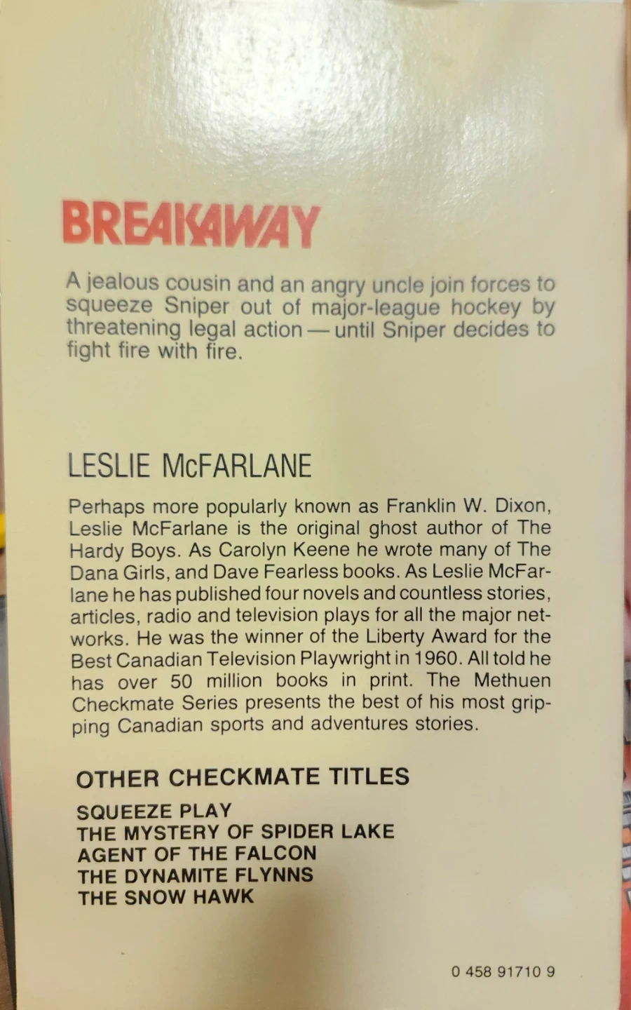 Breakaway. A soft cover novel titled Breakaway by Leslie McFarlane. Good Condition.
