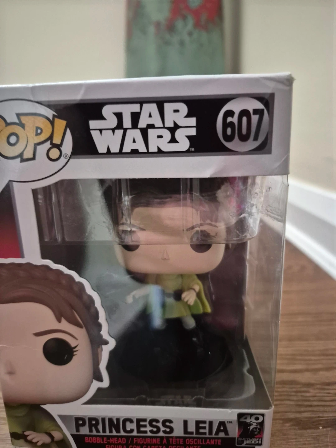 This is a Funko Pop! Star Wars Princess Leia bobble-head figure, number 607. It's in its original packaging. This collectible is a great addition for any Star Wars fan!