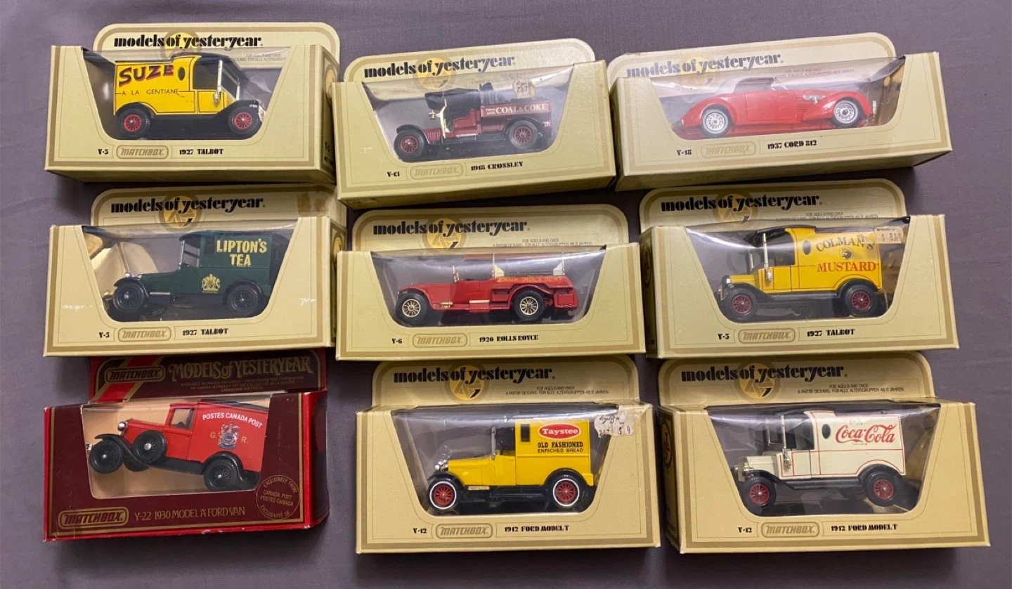9 Matchbox of Yesteryear die-cast vehicles. Includes various iconic car and truck models. These detailed replicas are from the 'Models of Yesteryear.' Off loading my older collection to make room for my newer ones. $35 each.