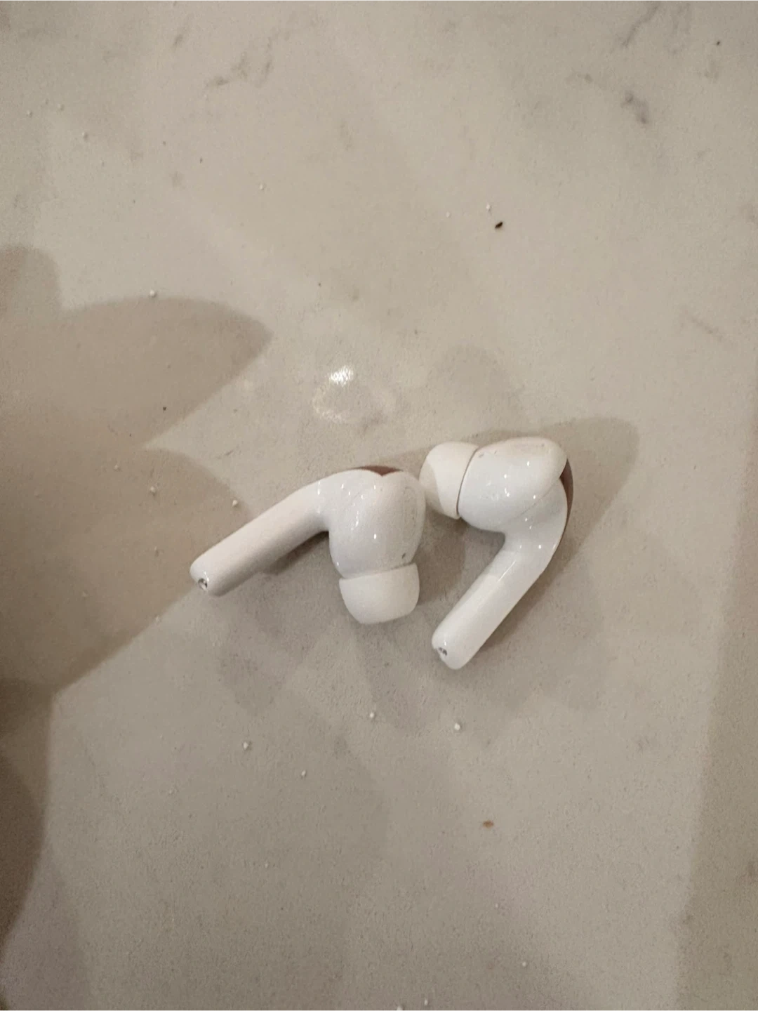 Wireless earbuds in a rose gold charging case. The case has a digital display showing battery life. Includes earbuds and charging case. Perfect for listening to music on the go!