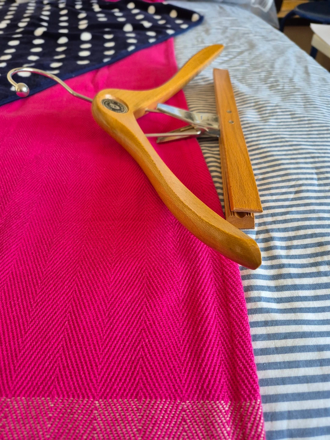 β Thicker, smoother wood and more sculpted than modern hangers.