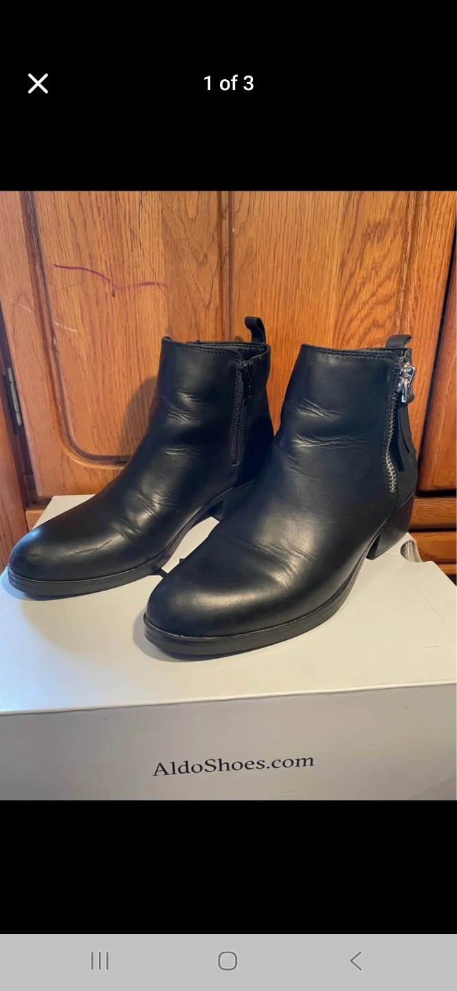Black ankle boots from Aldo. They feature a side zipper for easy wear. Perfect for everyday use! US size 8