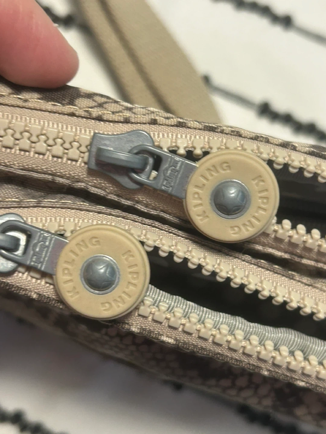 This Kipling crossbody bag features a stylish snake print design. It has multiple zippered compartments to keep your essentials organized. It's perfect for everyday use when you need to keep your hands free! 21 cm x 15 cm, I lost the monkey keychain