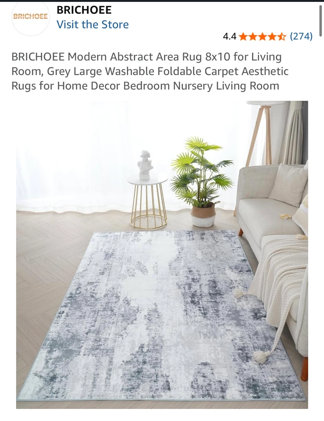 Brand new BRICHOEE Modern Abstract Area Rug 9x12 feet ( 2.74 x 3.65 m) for Living Room, Grey Large Washable Foldable Carpet Aesthetic Rugs for Home Decor Bedroom Nursery Living Room