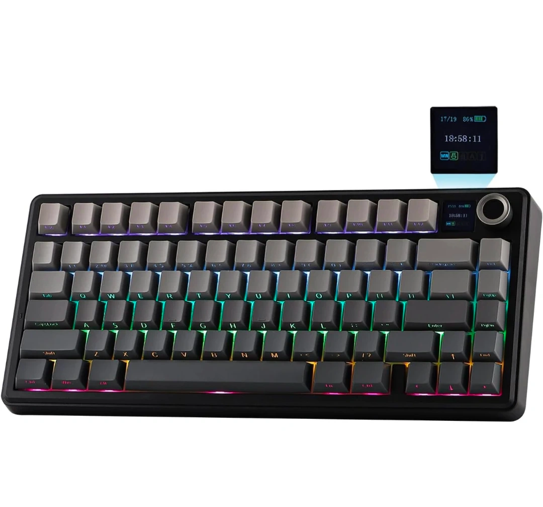 Aula F75 MAX Tri-Mode Wireless Gaming Keyboard, TFT Screen, Knob, Hot Swappable, 2.4GHz/Type-C/BT5.0, Gasket Creamy, for PC/Mac/Office/Gaming (Black Gradient), Side Printed keys